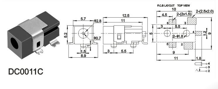 Compra Fuente de alimentación CC DC-011C, conector hembra de 2,5 x 0,7 mm, pin redondo de 0,6, base hembra, resistente a altas temperaturas, conector hembra SMT al por mayor en Joom.pro