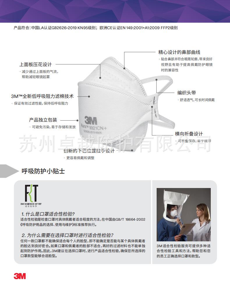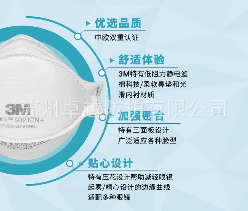 Filtro de mascarilla 3M9321CN+ KN95, protector facial, autocebante, antipartículas, FFP2