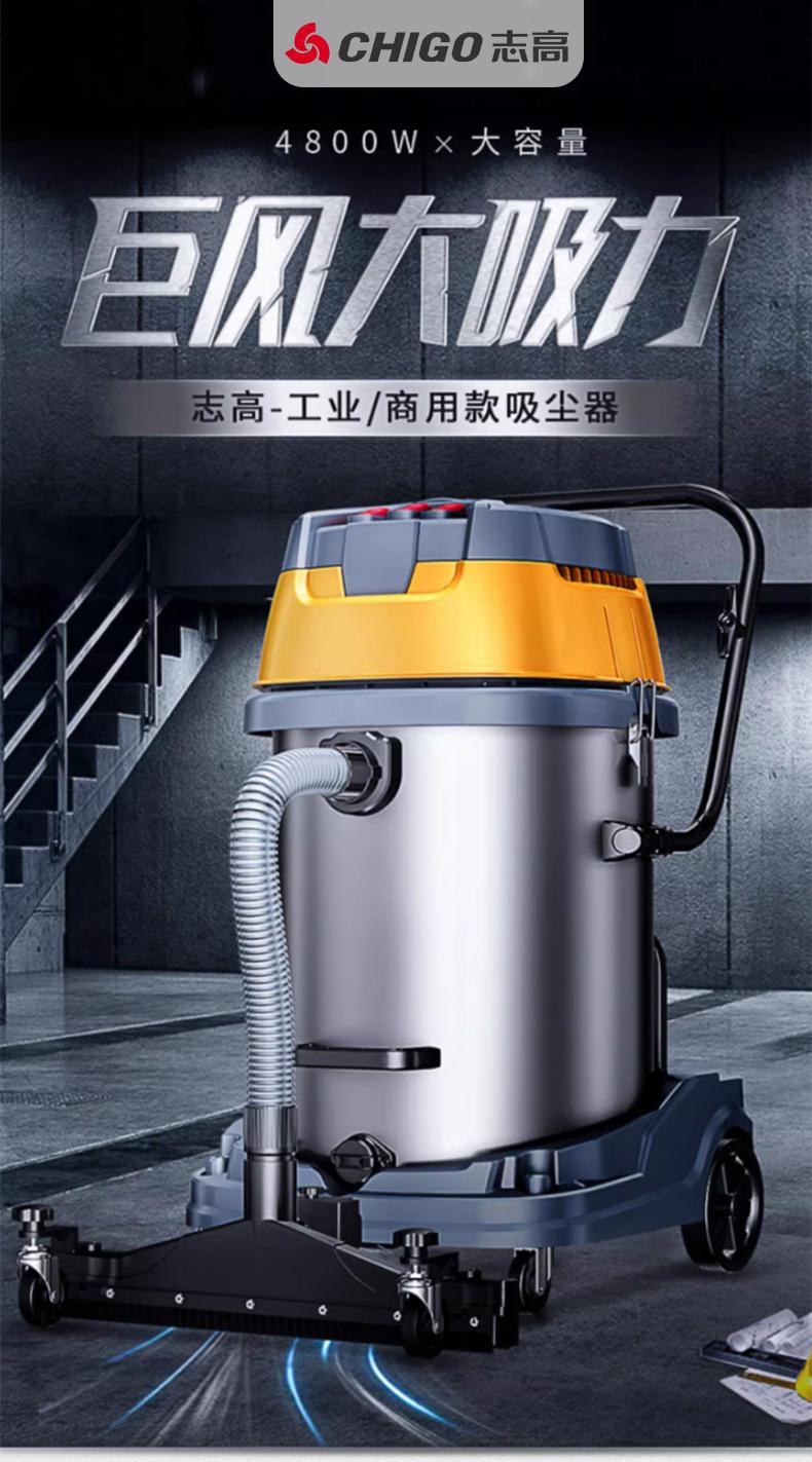 Aspiradora industrial Chigo de alta potencia para talleres de fábrica, seca y húmeda, para chatarra de hierro, basura y a prueba de explosiones.