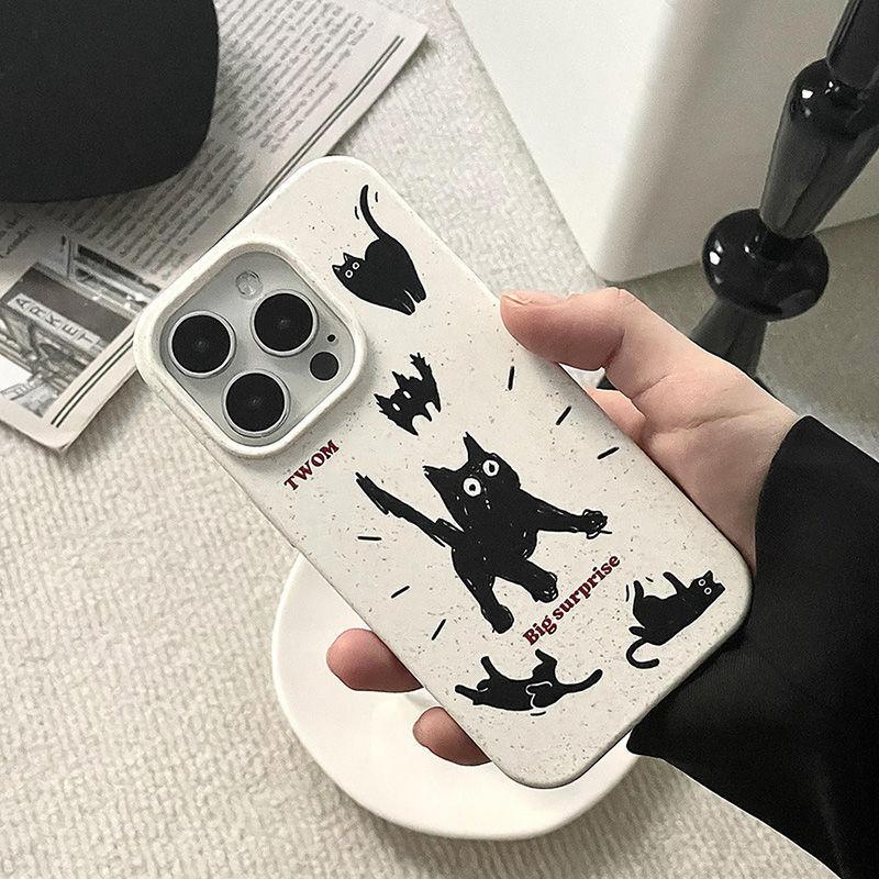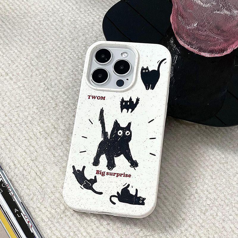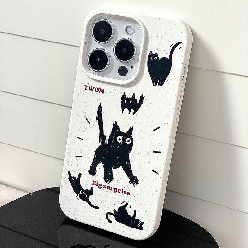 Adecuado para Iphone16/15Promax Anti-Caída Personalizado Estilo Ins Frito Gatito Negro Funda para Teléfono Móvil Simple