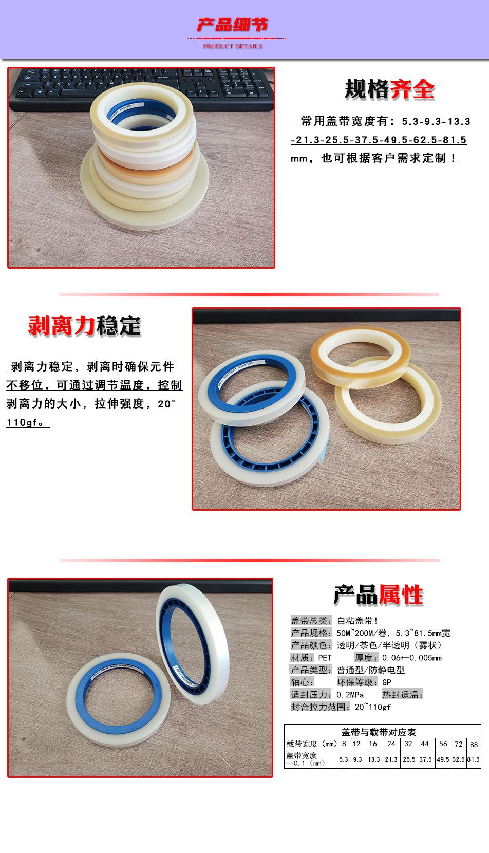 Cubierta Superior Autoadhesiva Transparente con Cinta de Transporte de 9.3mm*200/400/500 El Paquete de Correa Superior Autoadhesiva se Puede Personalizar