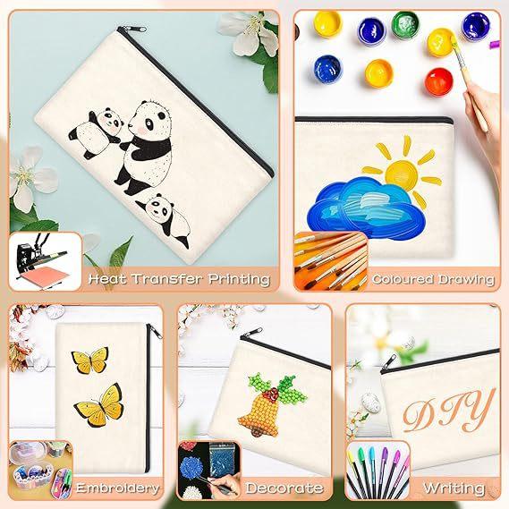 Bolsa de Lona de Algodón de Amazon Bolsa con Cremallera Bolsa Creativa para Pinceles de Dibujo Bolsa de Almacenamiento Papelería para Estudiantes Bolsa de Embalaje para Cosméticos