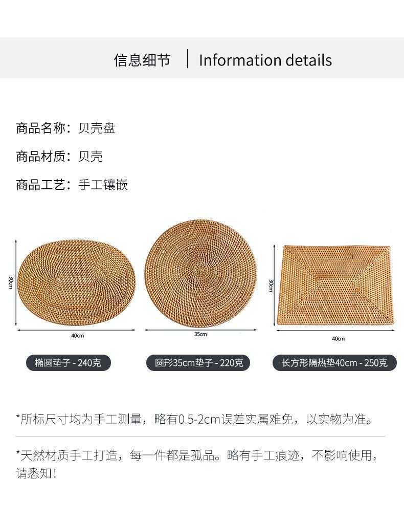 Rattan oval mat 30*40, Rattan circle diameter 35cm (round), Rattan round single piece 22cm, Rattan circle diam...