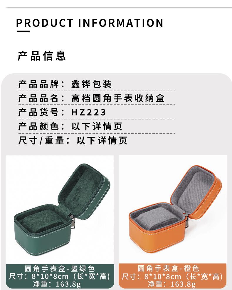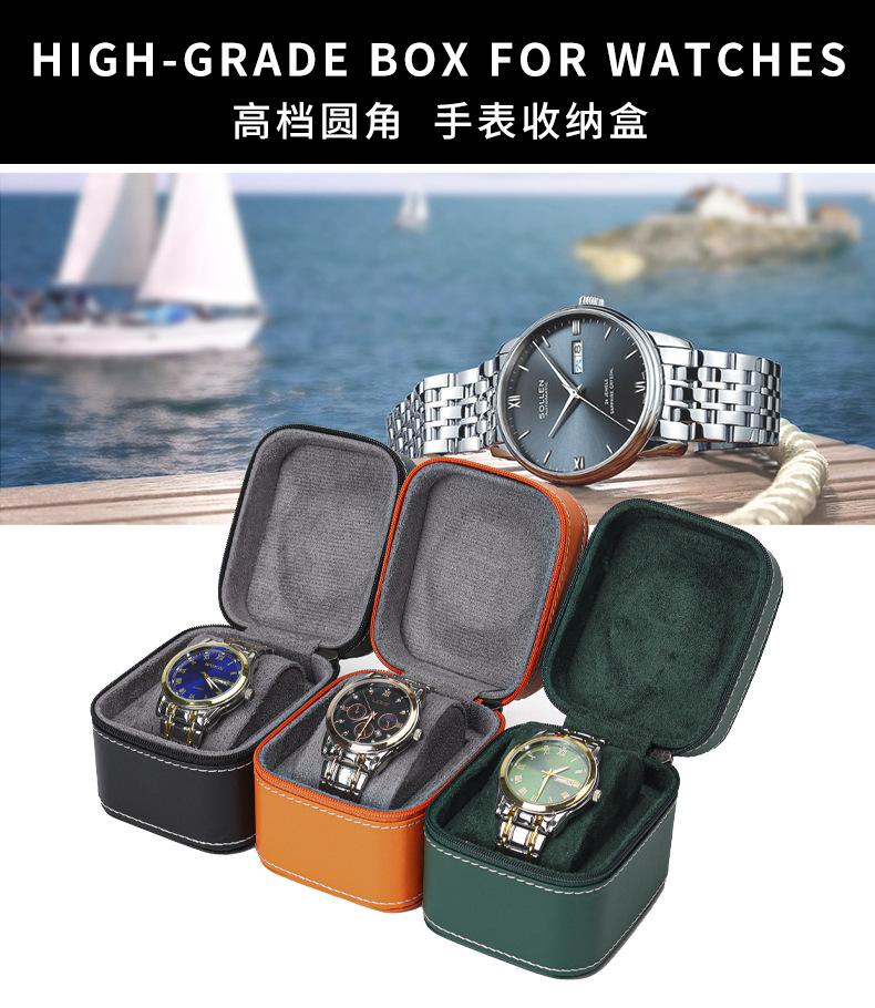 Caja de reloj de PU de alta gama con cremallera redondeada, caja de almacenamiento para reloj de pulsera, caja de embalaje para regalo de joyería, venta al por mayor