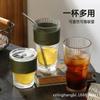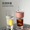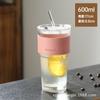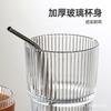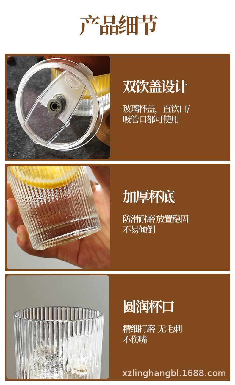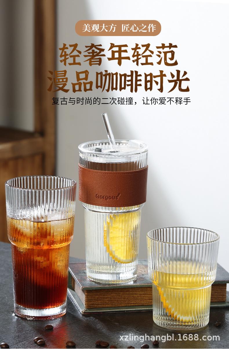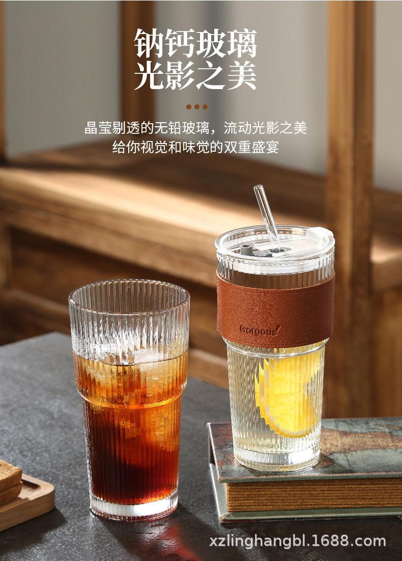 Taza de succión de patrón vertical, taza de vidrio de gran capacidad, taza de vidrio de alta apariencia, taza portátil para bebidas, jugos de frutas y café.
