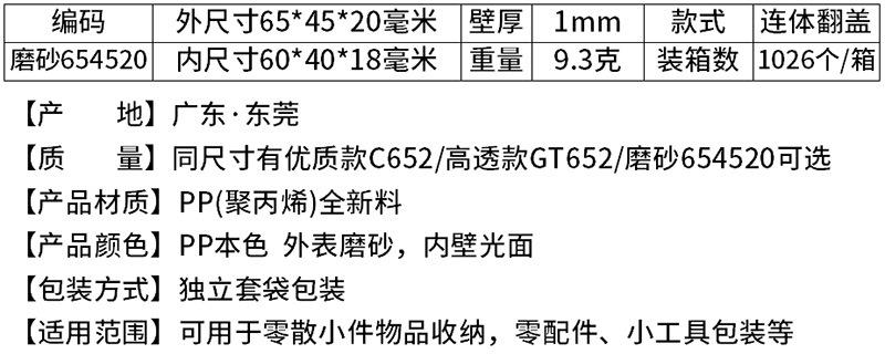 Caja de Plástico PP Rectangular Esmerilada Mini Caja de Accesorios 65x 45x 20 Caja de Embalaje Electrónico Caja de Almacenamiento Pequeña