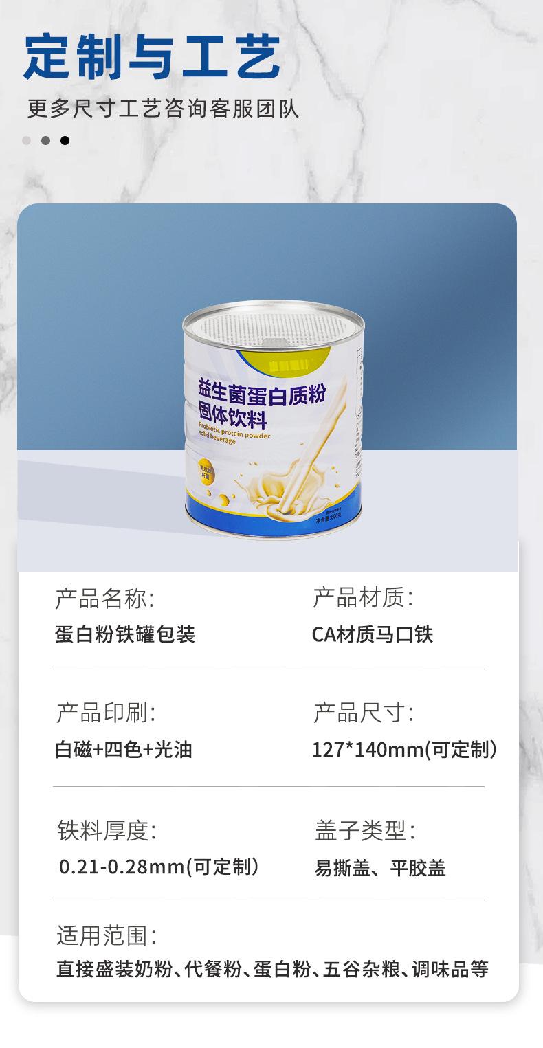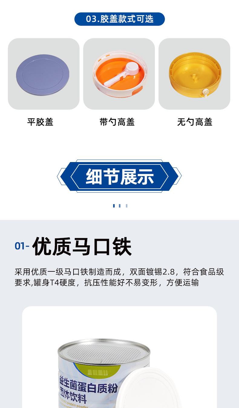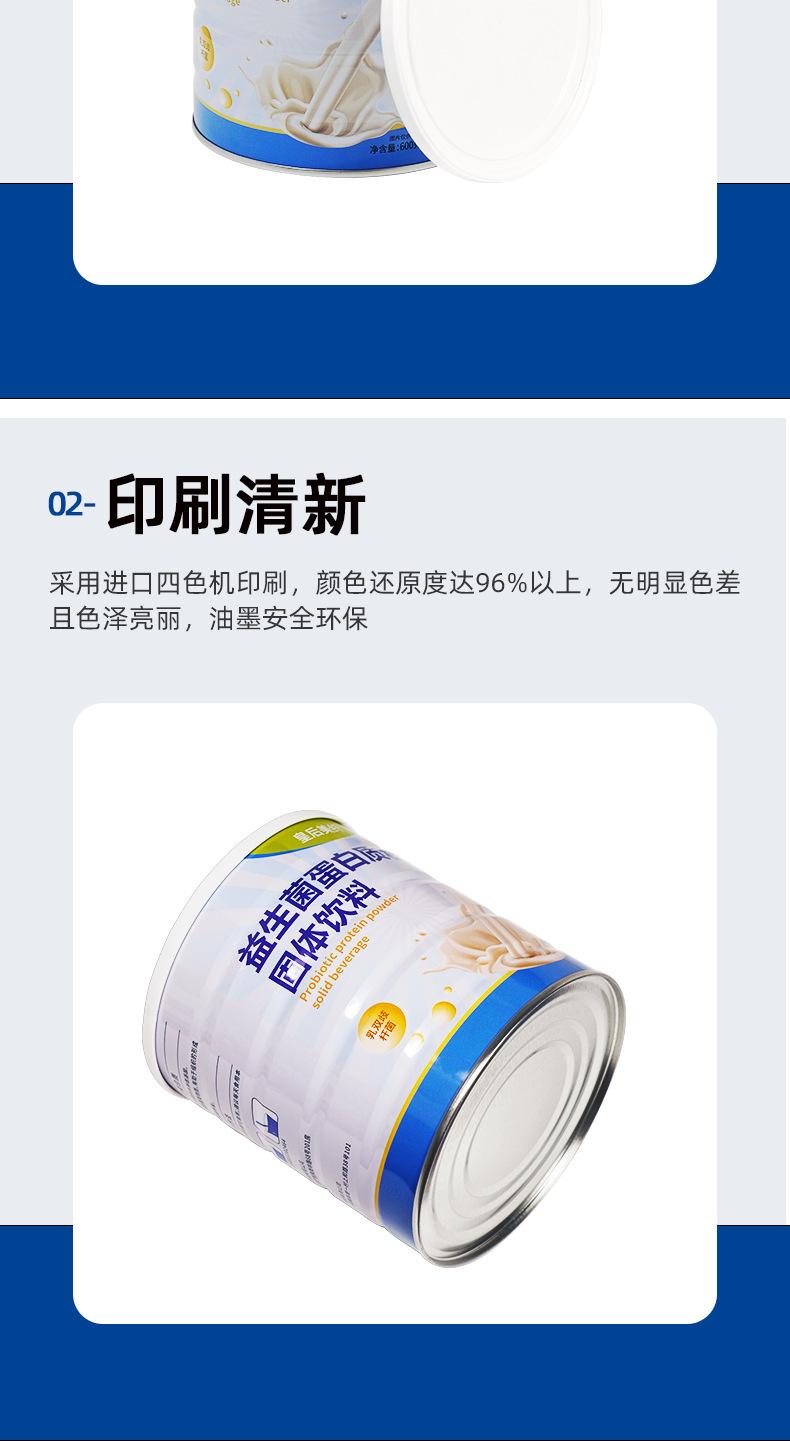 Lata Redonda de Hojalata para Alimentos Lata para Polvo Sustituto de Comida Polvo de Proteína Embalaje Lata de Hojalata 600g Polvo de Proteína Lata de Hojalata Sellada Lata Vacía