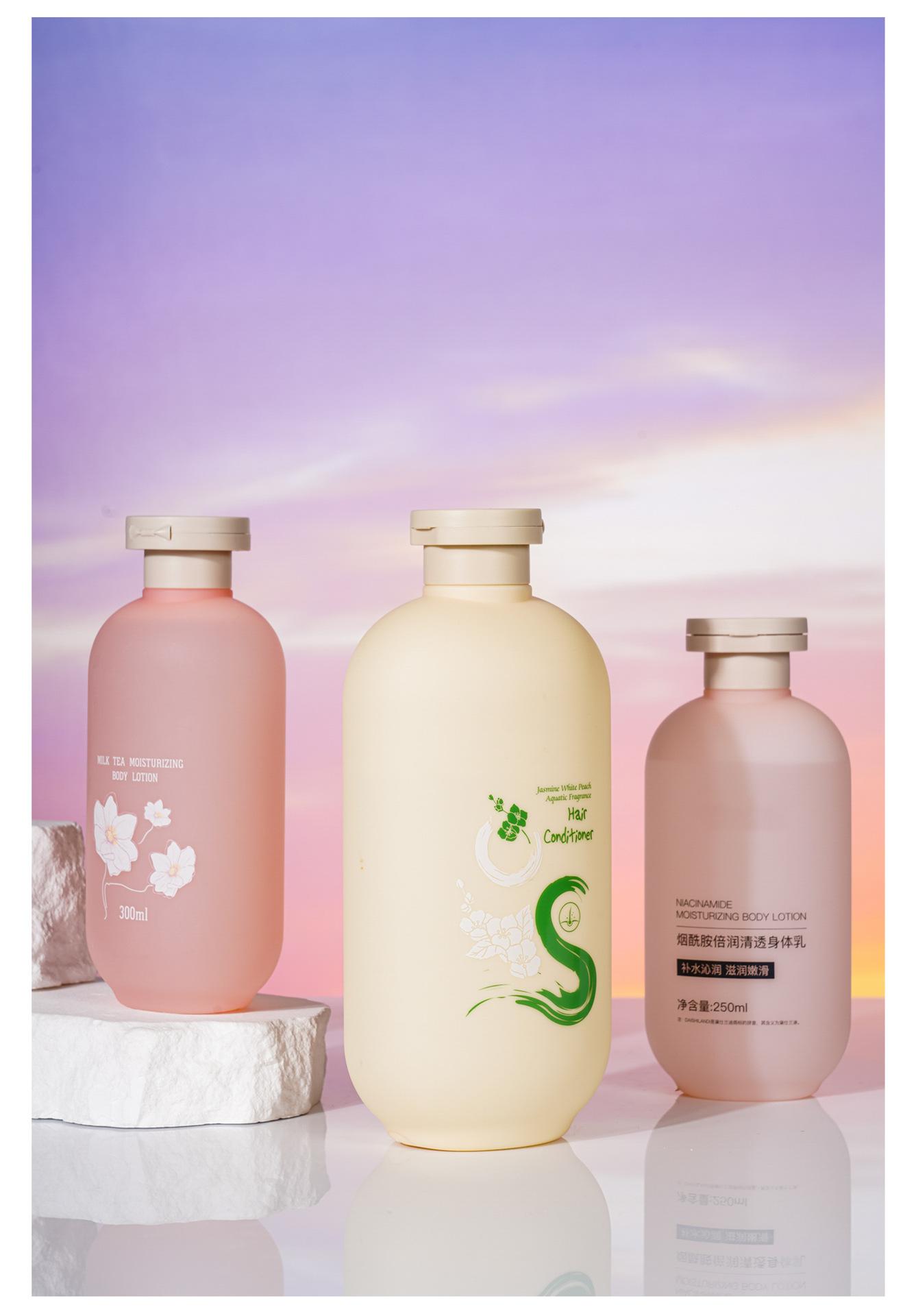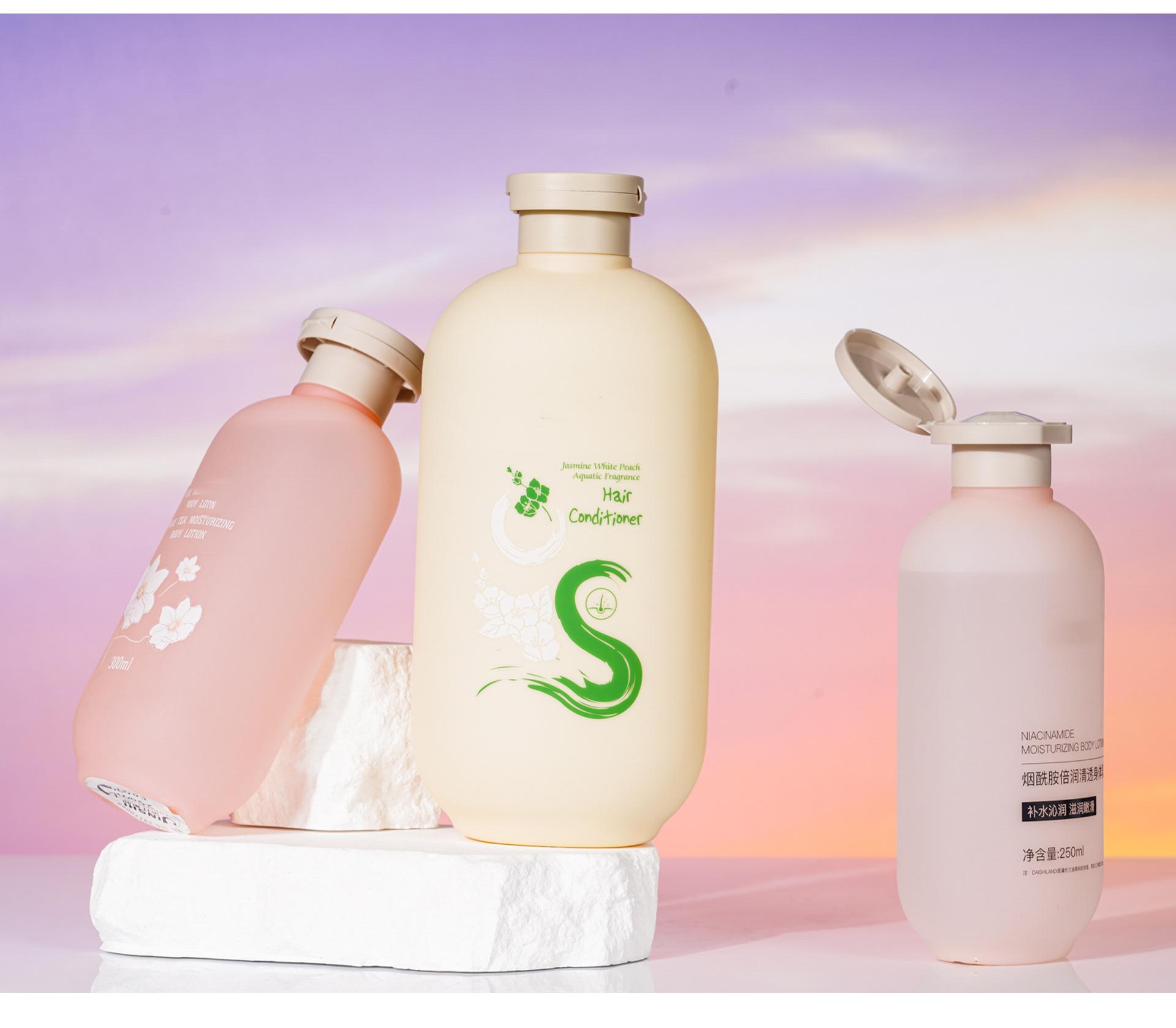 Botella redonda de PE250 ml, bolsa de lavado y protección, material para champú, baño, desinfectante de manos, prensa, embalaje, botella vacía.
