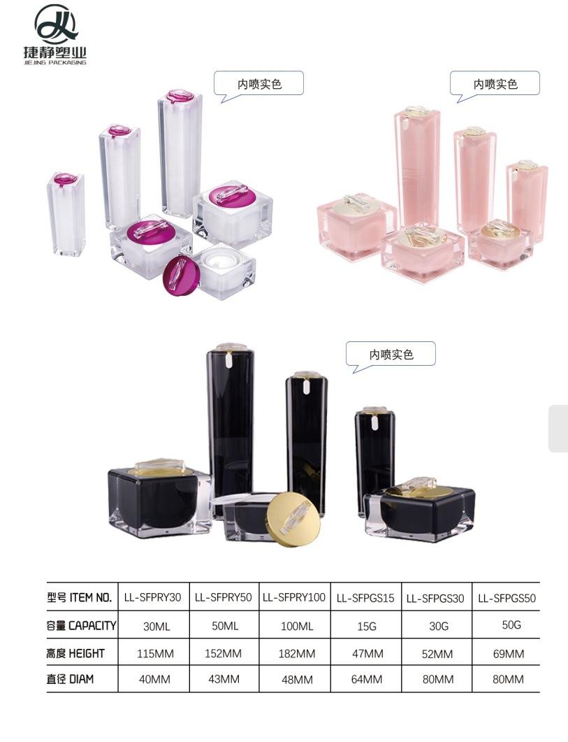 Botella Cuadrada de Acrílico Crema Azul Doble Capa Vacío Botella para Loción 50g Botella Cosmética de Manzana traje 100ml