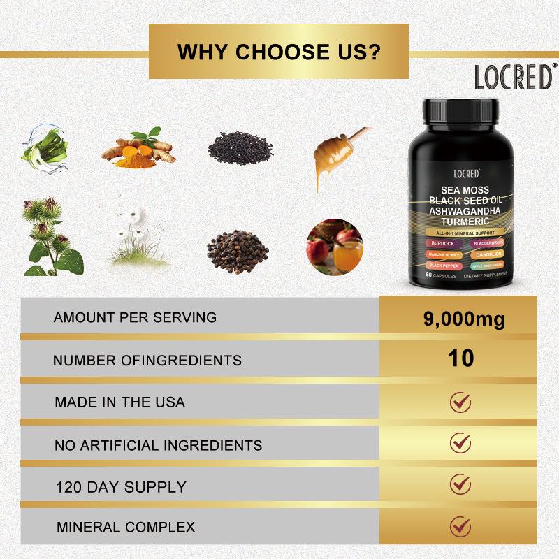 Sea moss black seed oil Indian ginseng turmeric