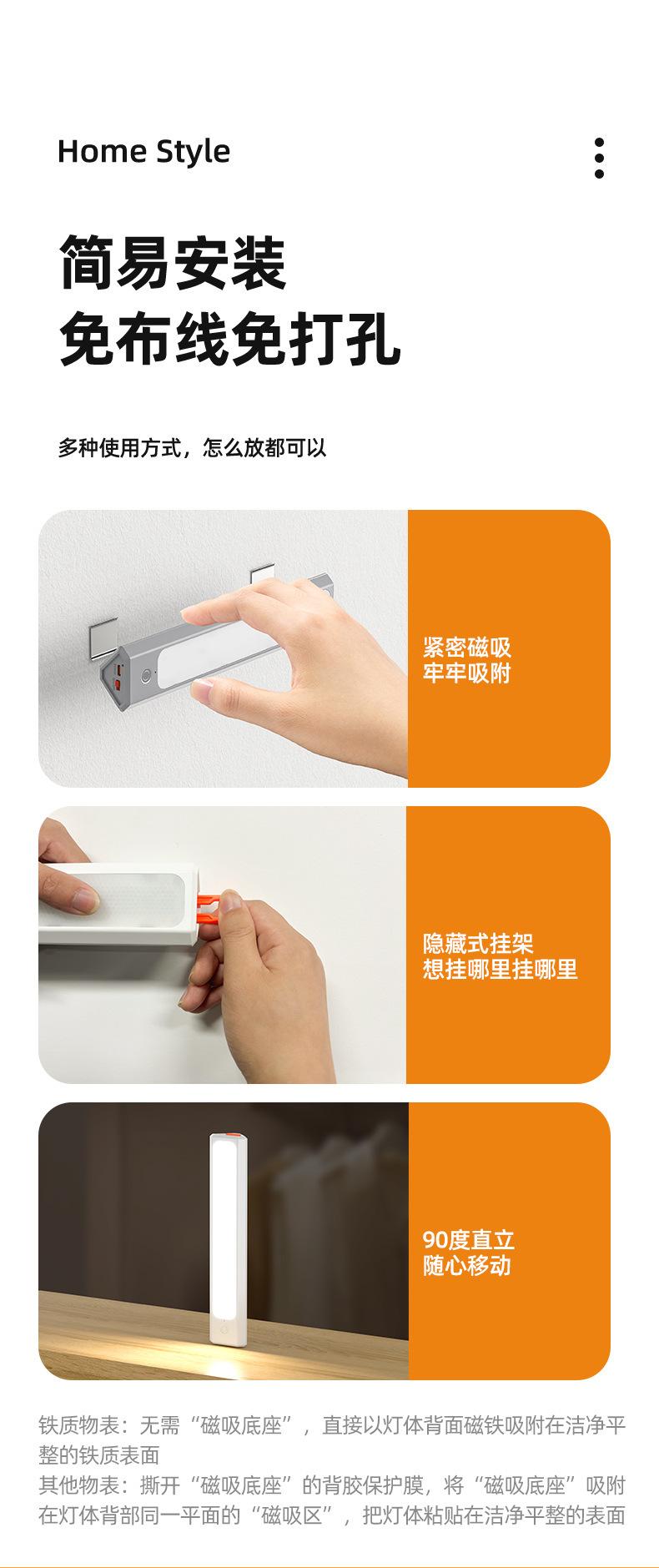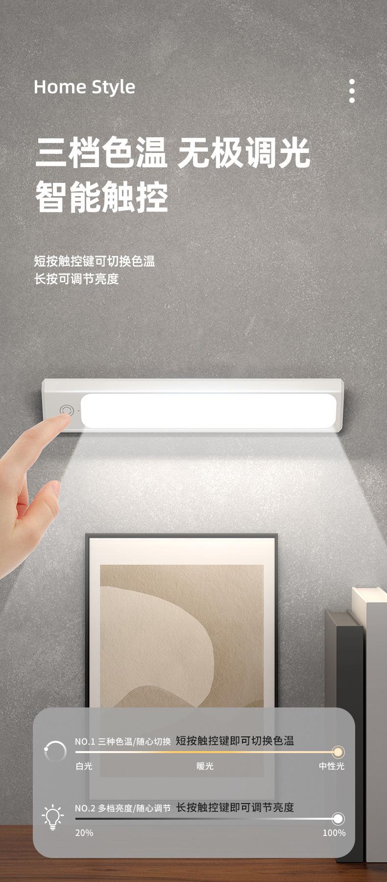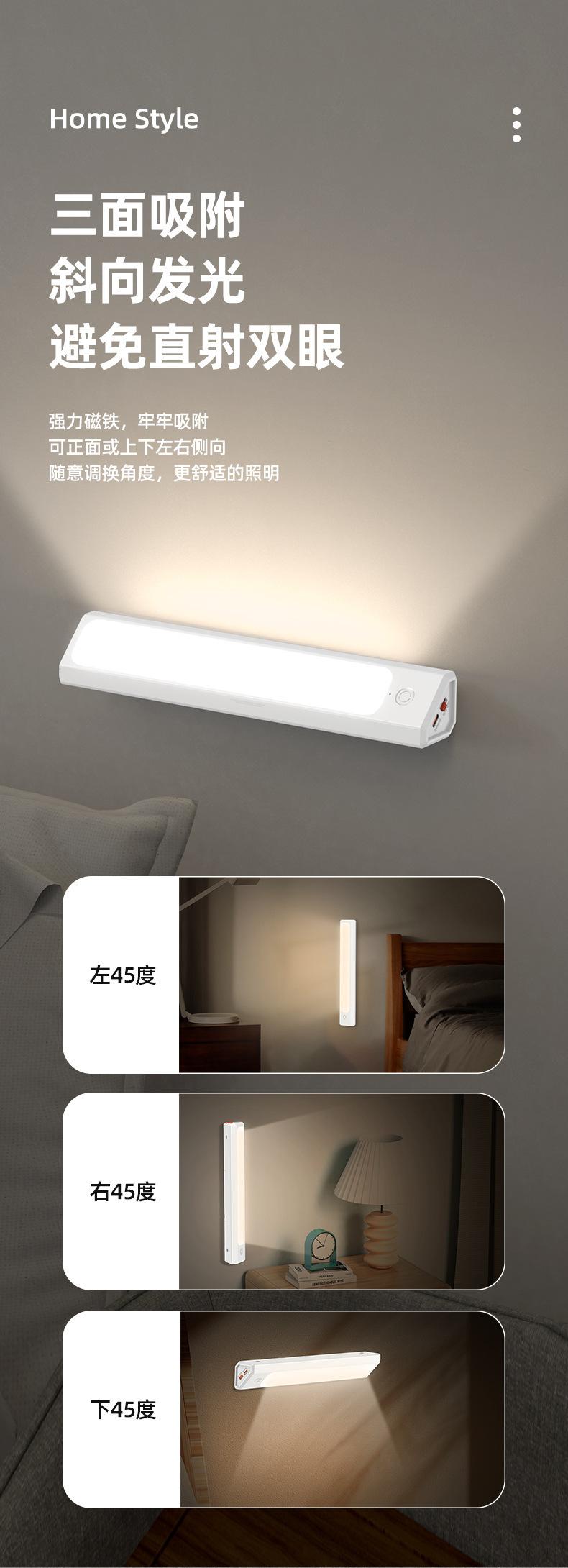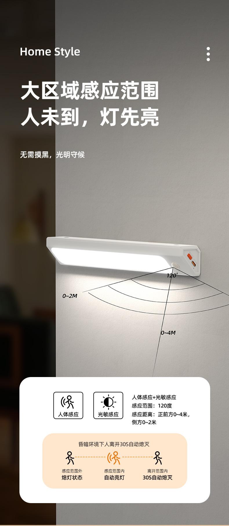 Luz LED inteligente de inducción del cuerpo humano transfronteriza ultradelgada inalámbrica magnética tira de luz nocturna recargable barra de luz para armario