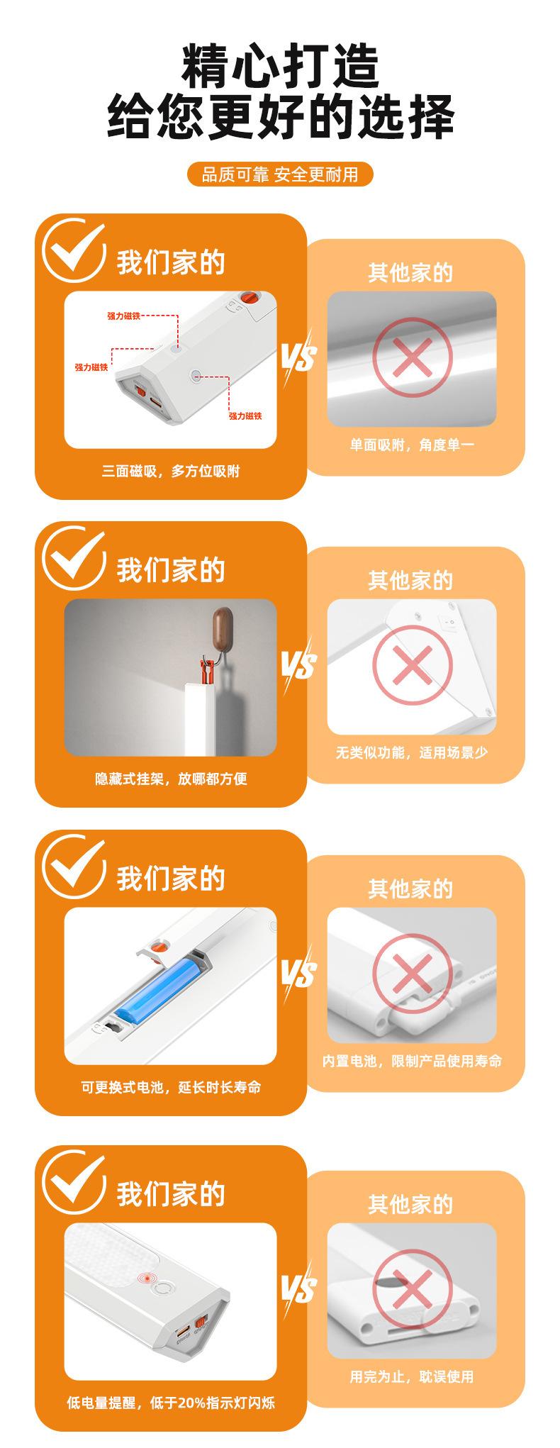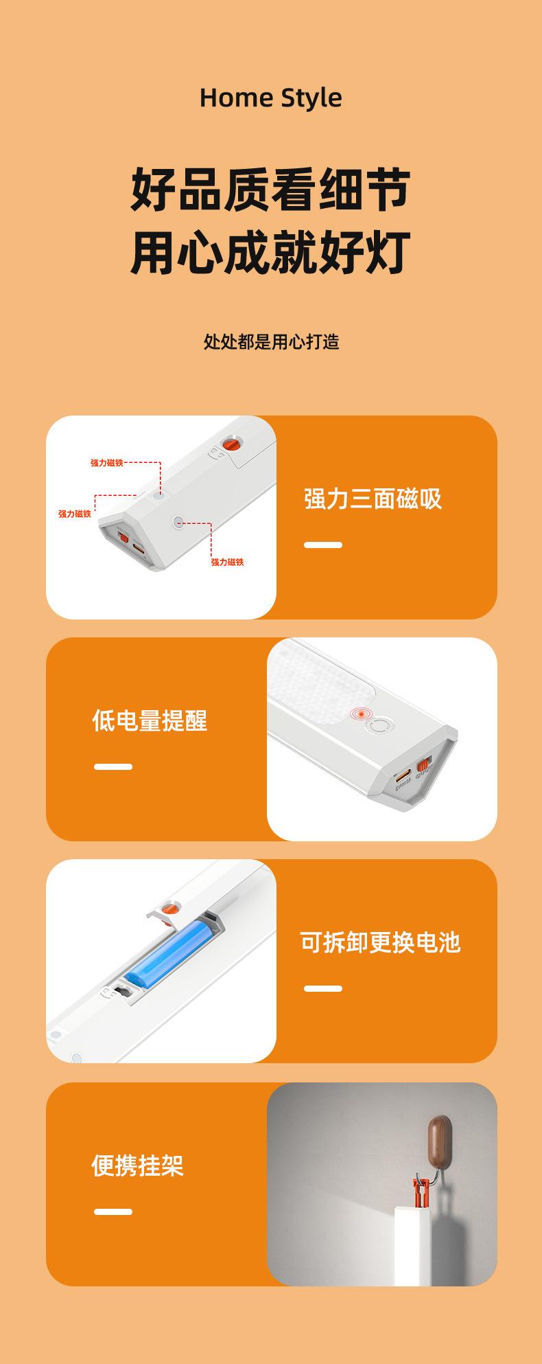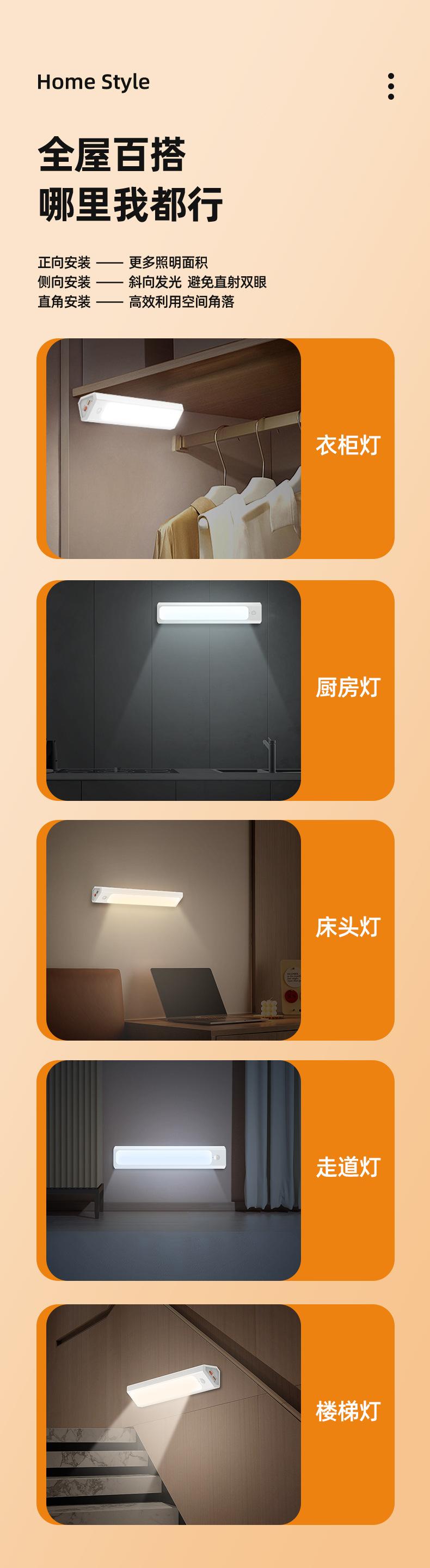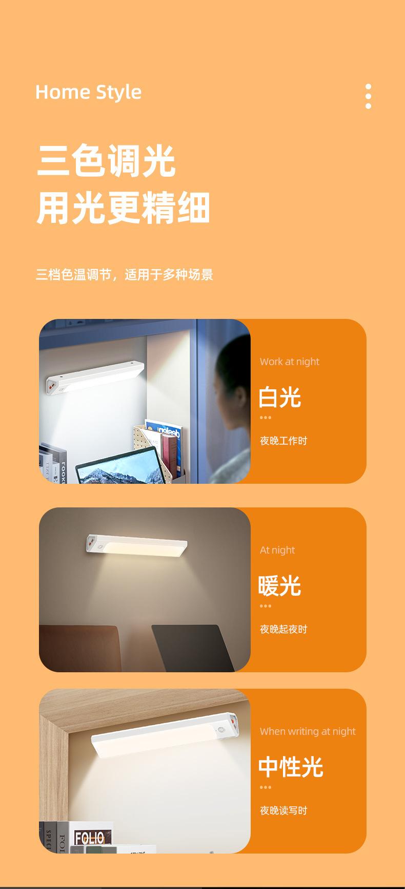 Luz LED inteligente de inducción del cuerpo humano transfronteriza ultradelgada inalámbrica magnética tira de luz nocturna recargable barra de luz para armario
