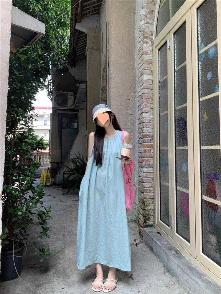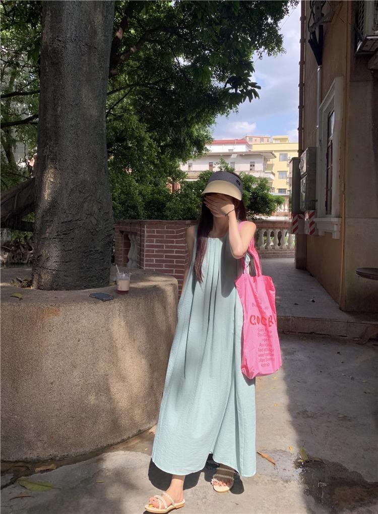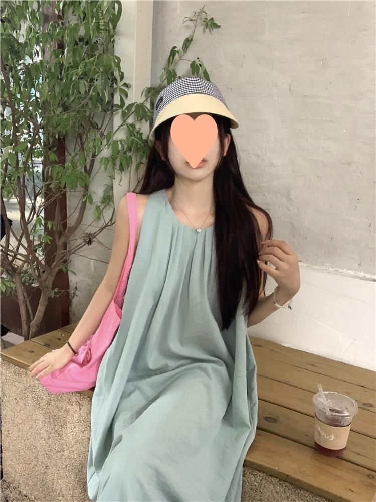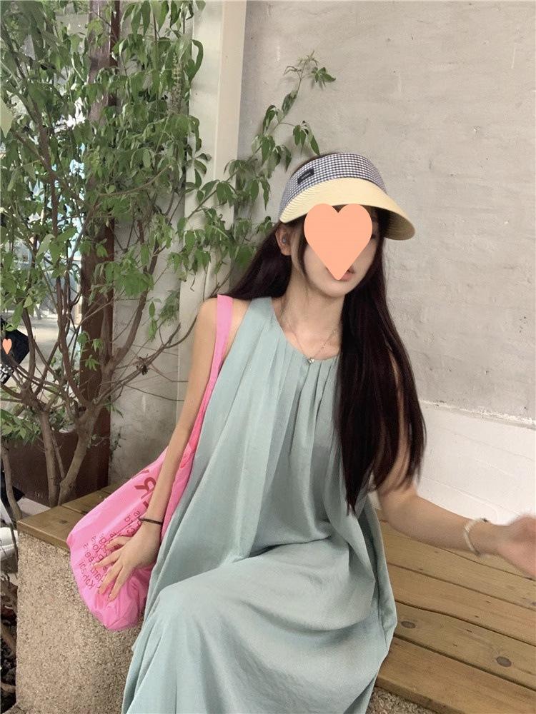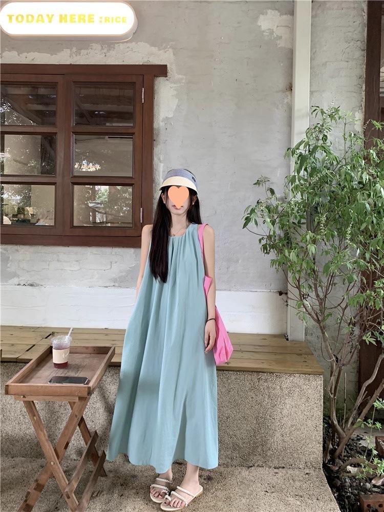Vestido Chaleco sin Mangas para Mujer Verano 2025 Nuevo Vacaciones en la Playa Tirantes Halter Falda Larga de Playa