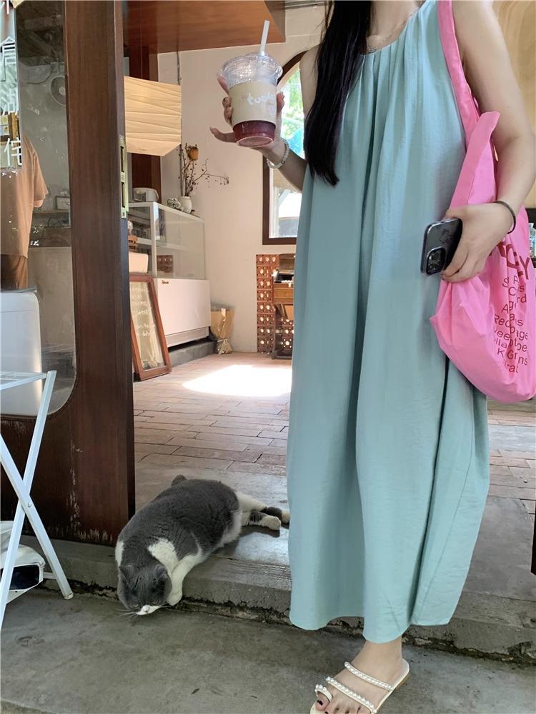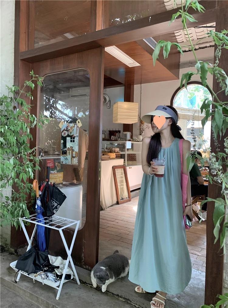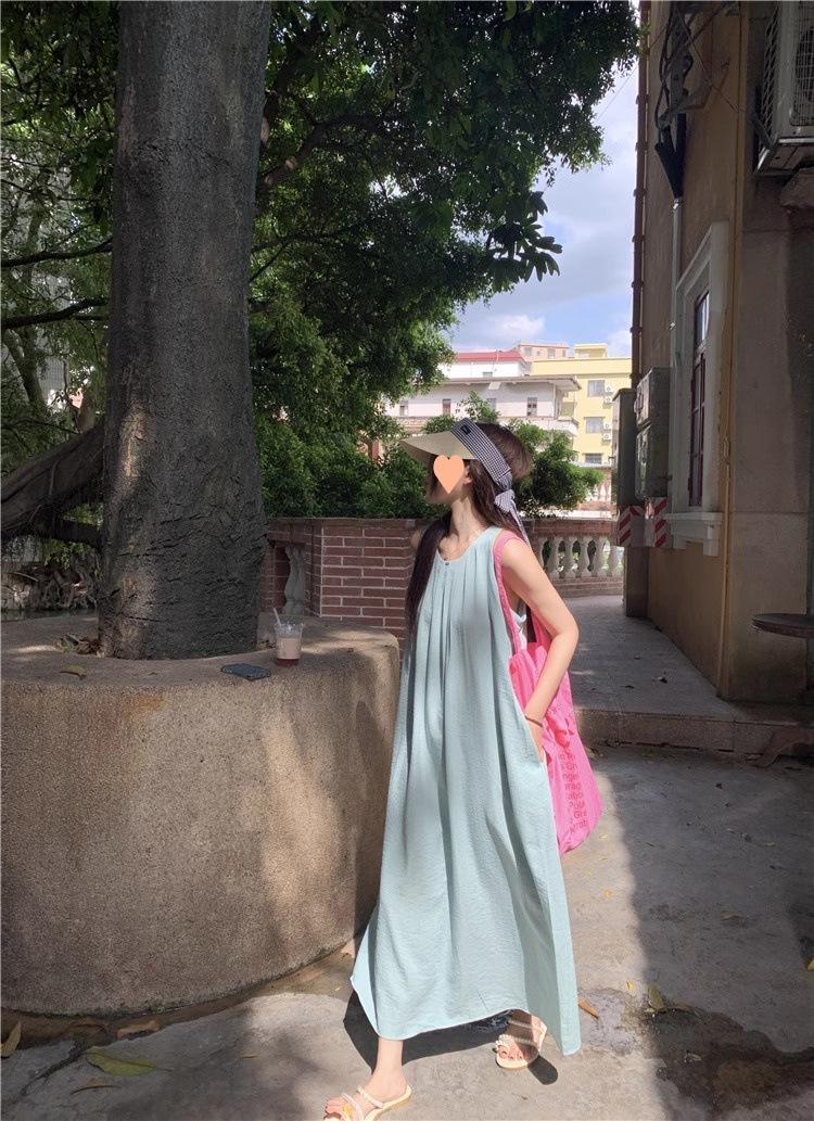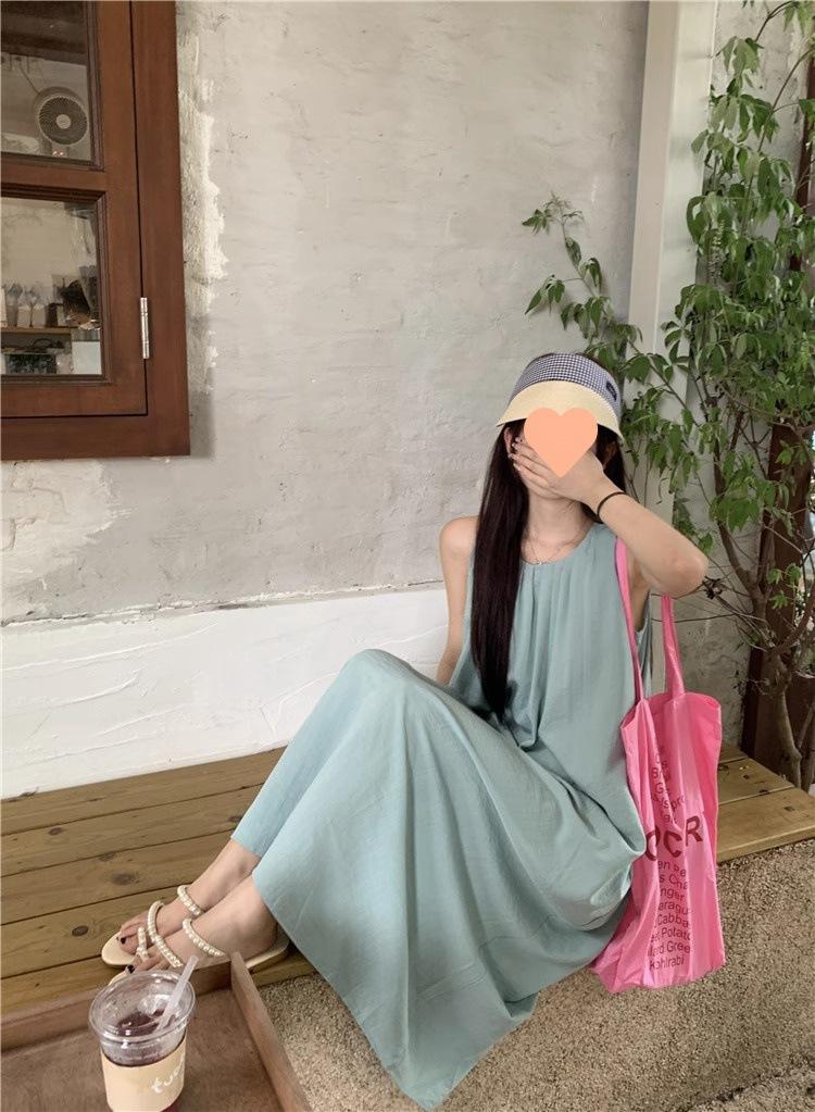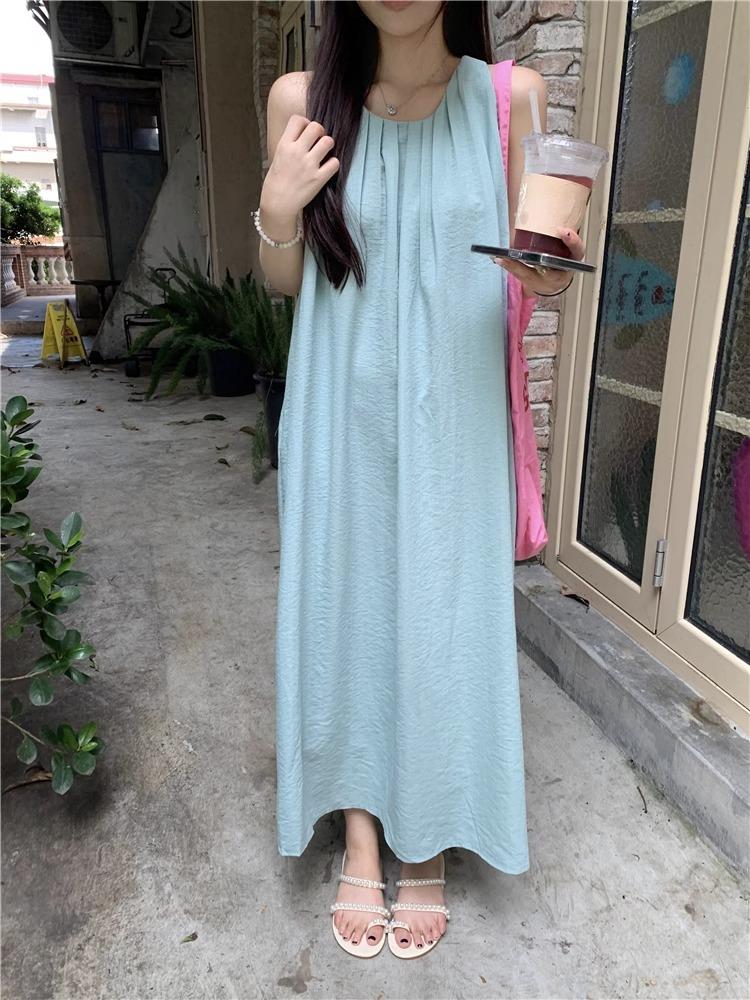 Vestido Chaleco sin Mangas para Mujer Verano 2025 Nuevo Vacaciones en la Playa Tirantes Halter Falda Larga de Playa