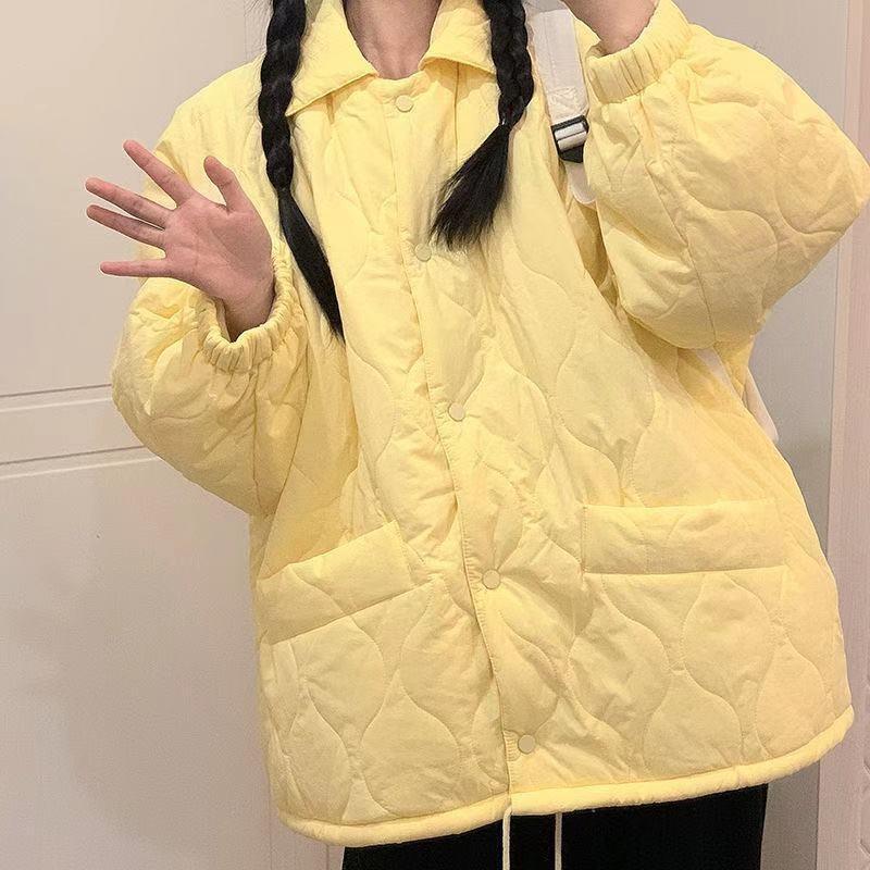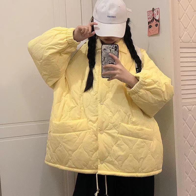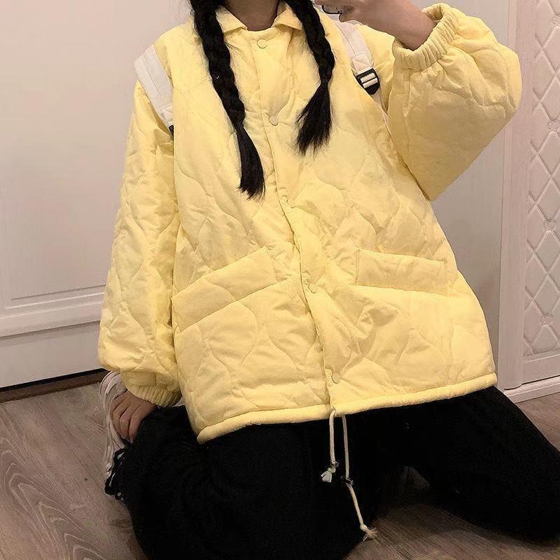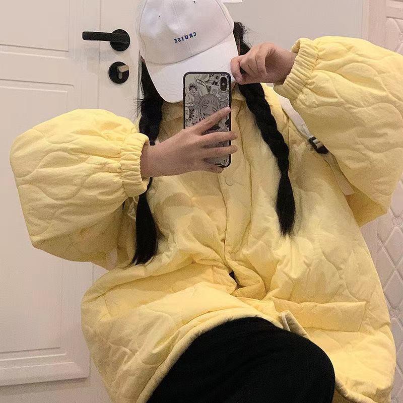 Abrigo de Algodón Cálido Grueso con Forro Polar para Mujer Trendy Ins Otoño e Invierno 2021 Largo Medio Color Sólido Combinable Suelto Acolchado de Algodón para Mujer