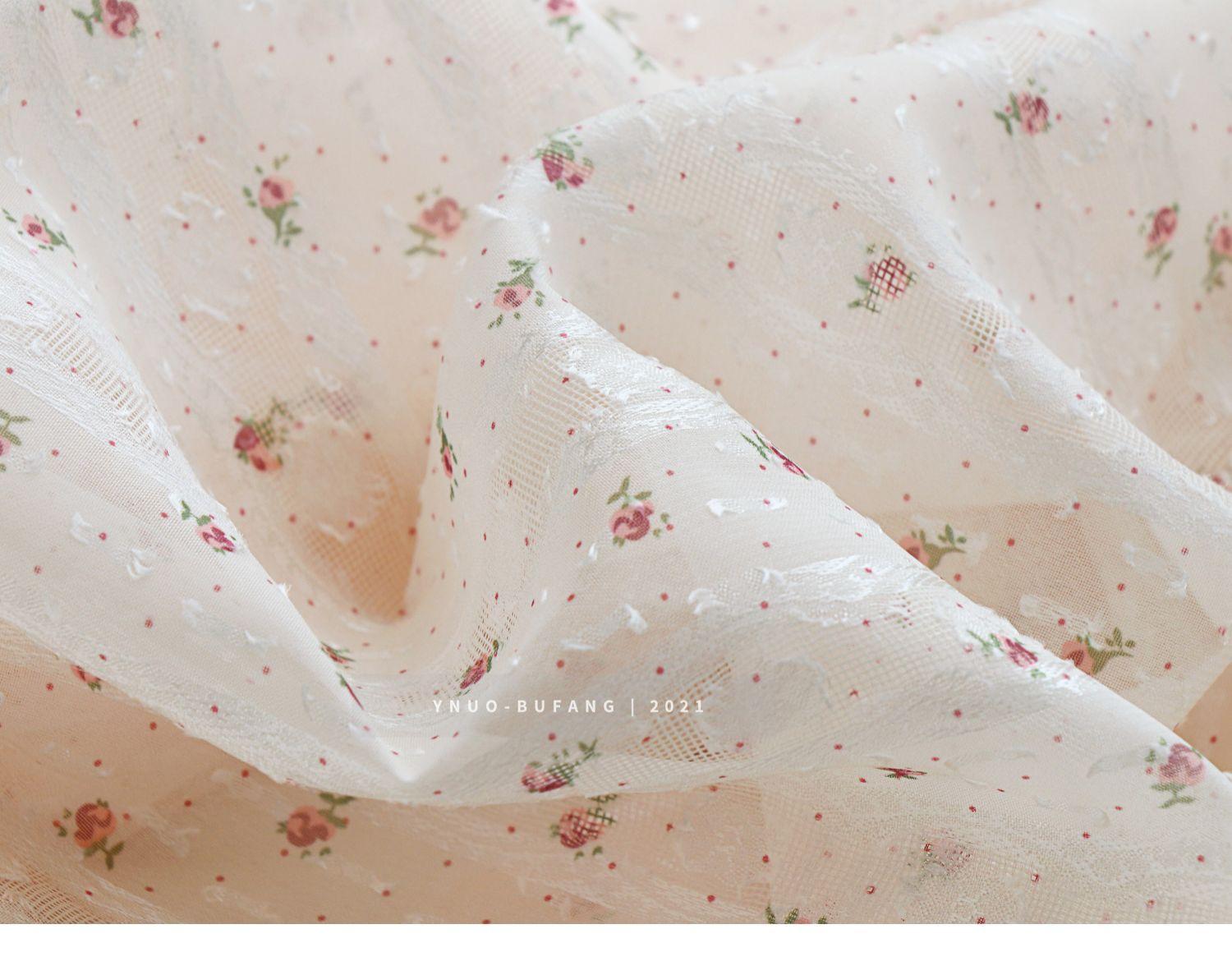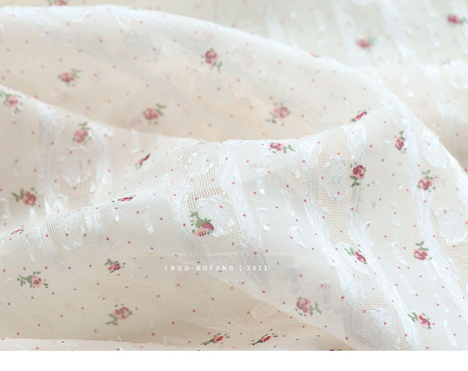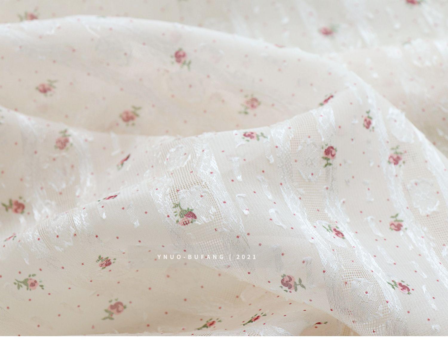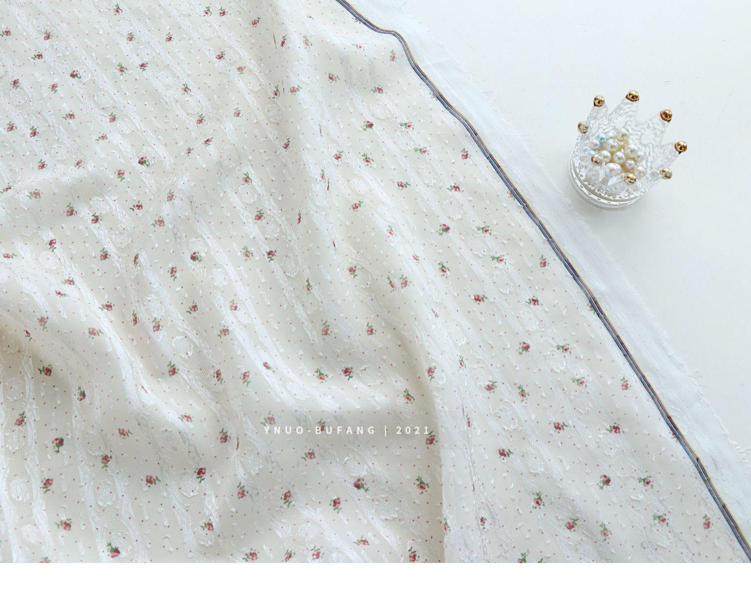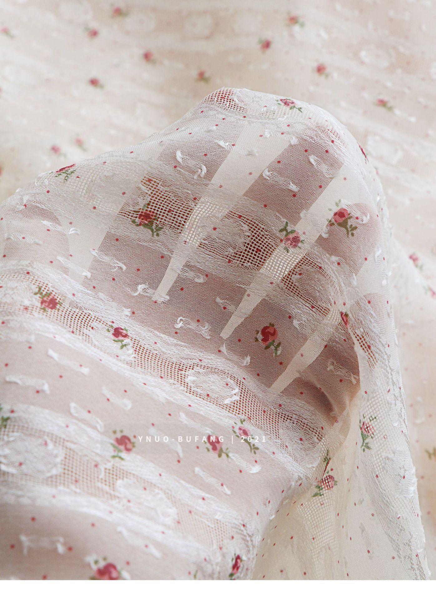 Vestido de tela jacquard con estampado de rayas verticales y pequeñas flores de gasa, ropa Hanfu, tela translúcida