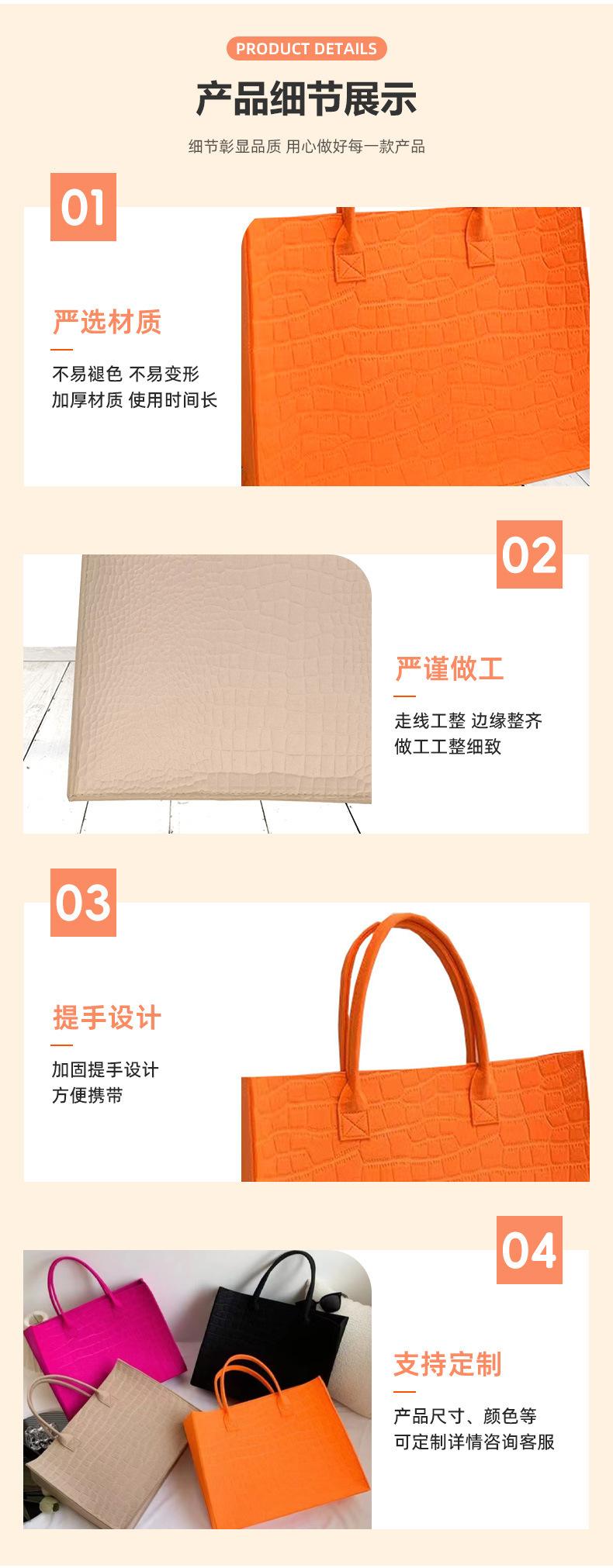 Bolso de Fieltro de Moda Simple Bolso de Hombro Moda Gran Capacidad Bolso de Mujer Nuevo Patrón Cocodrilo Bolso de Mano de Fieltro Engrosado