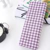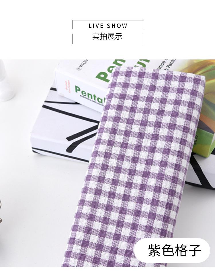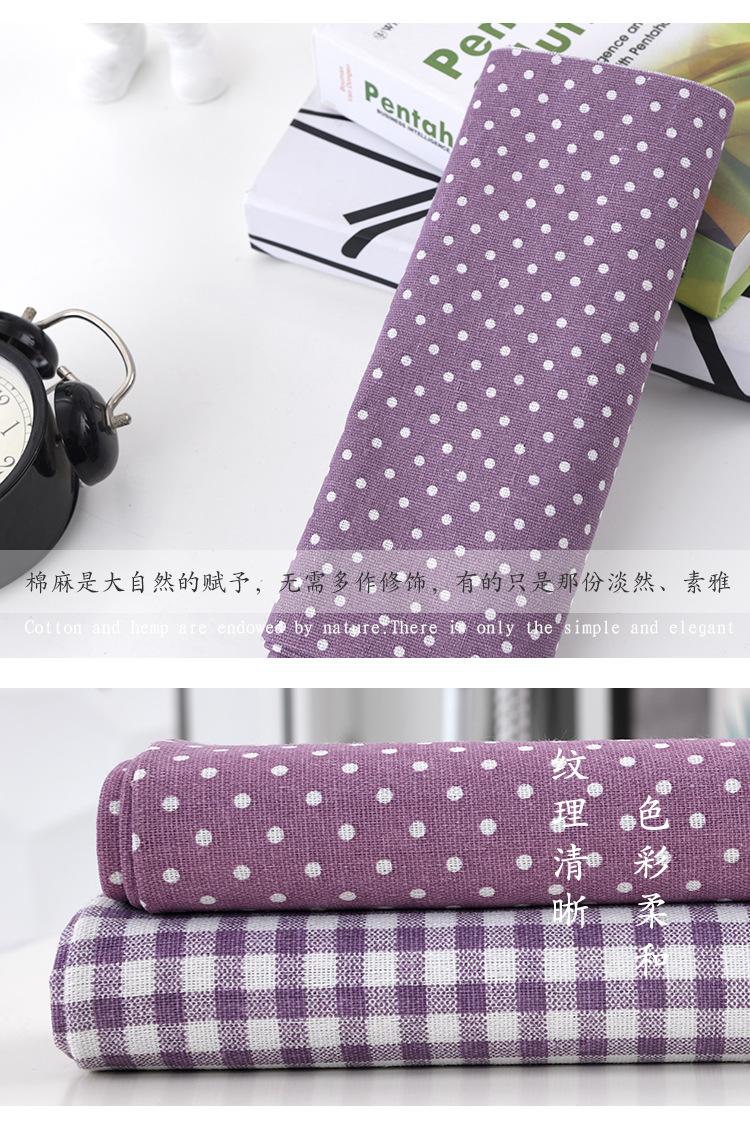 Tela de lino y algodón con diseño floral para jardín de infantes, hecha a mano, con cuadros morados, procesamiento de cabeza rota
