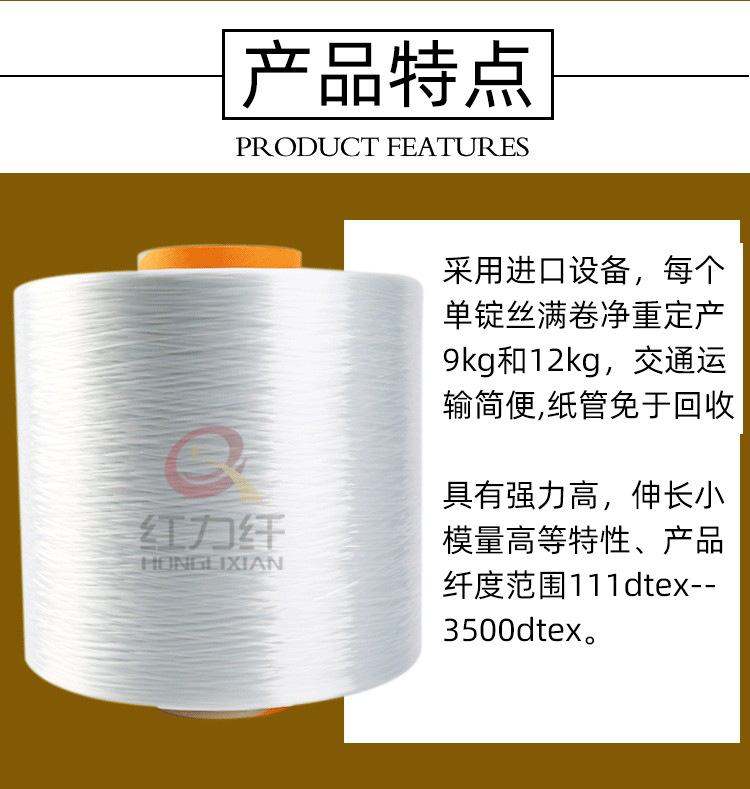 El coeficiente de rotura del hilo de nailon producido por nuestra empresa ha alcanzado entre 6.5-9.0 gramos por denier, lo cual se adapta completamente a las aplicaciones de más industrias. Las especificaciones comunes son: 150D, 250D, 300D, 420D, 500D, 630D, 750D, 840D, 1000D, 1500D, 2000D, 3000D,