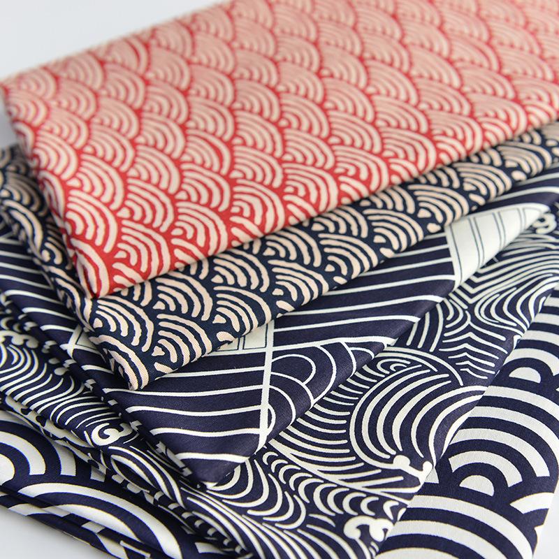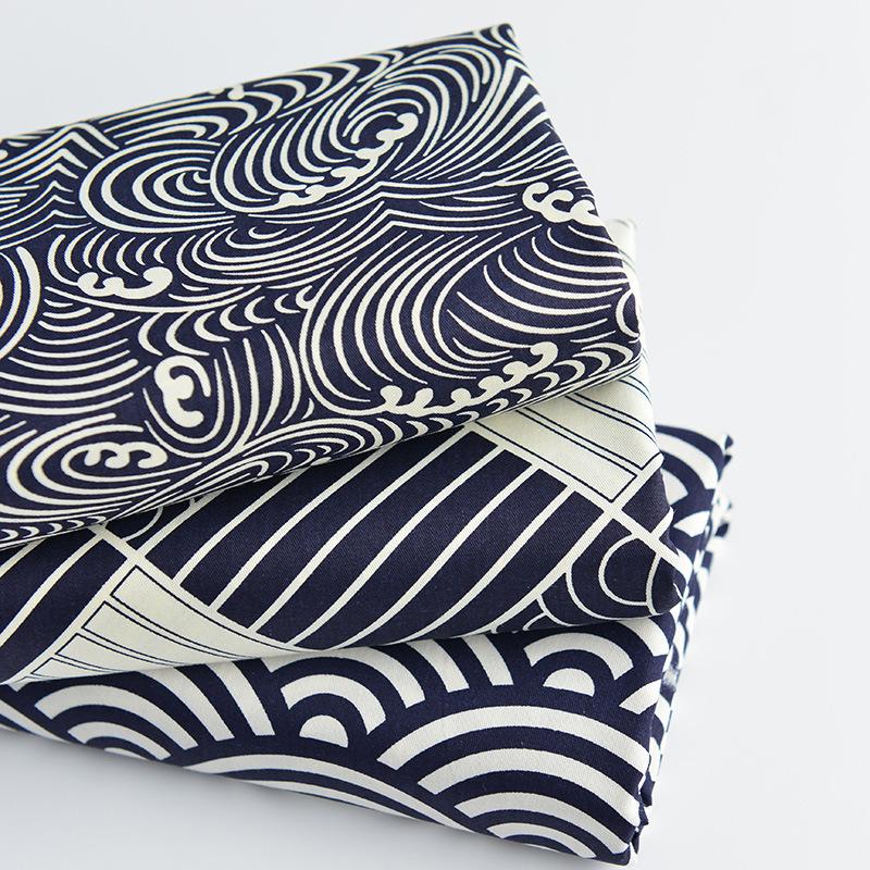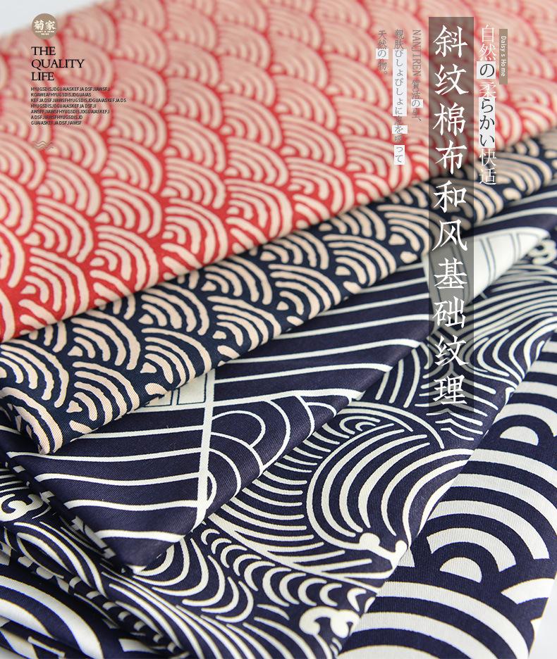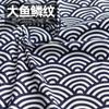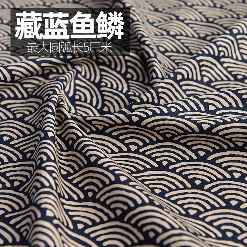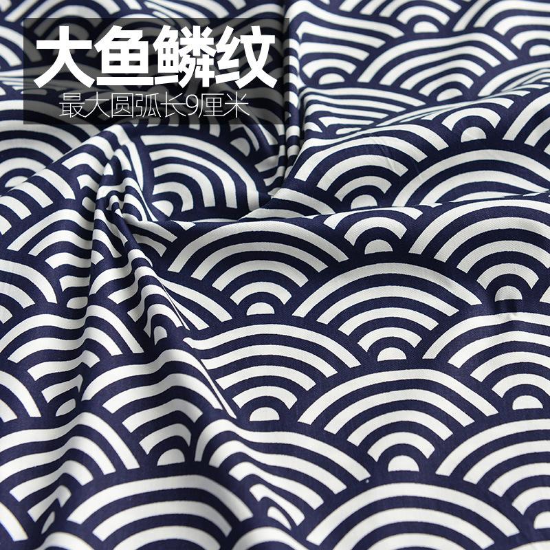 Tela de algodón puro, tela japonesa, estilo nacional antiguo, tela de algodón sarga, patrón de escamas de pescado, patrón básico de olas y viento