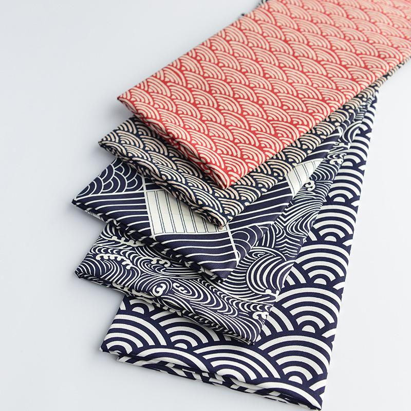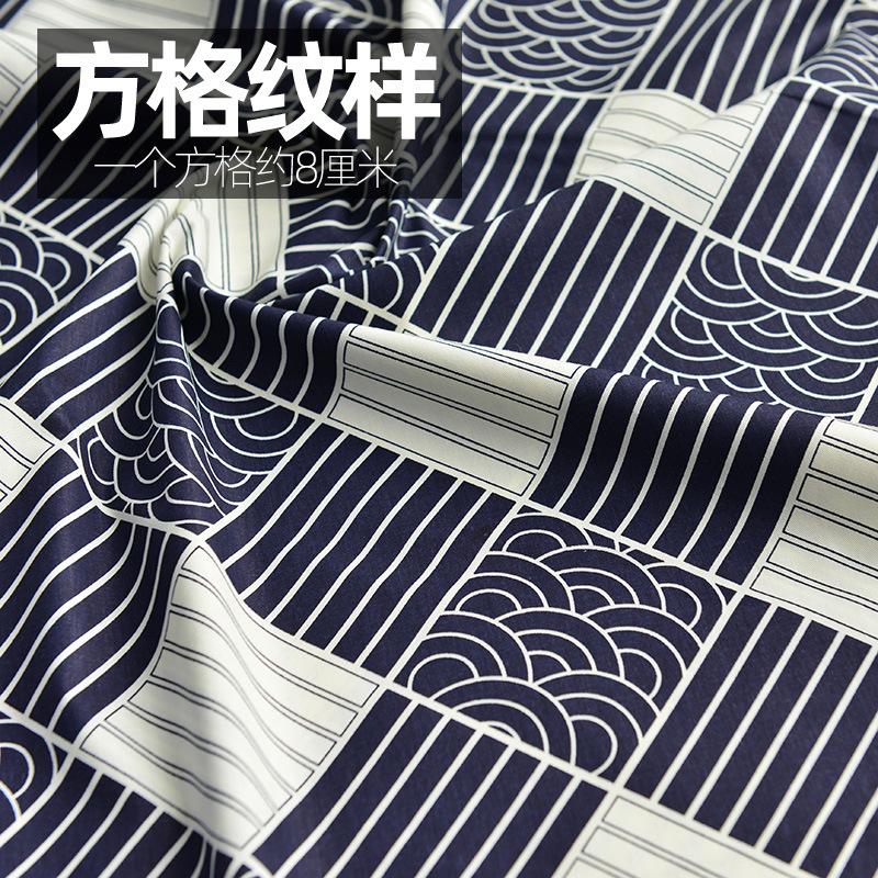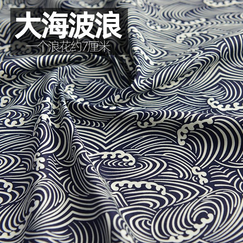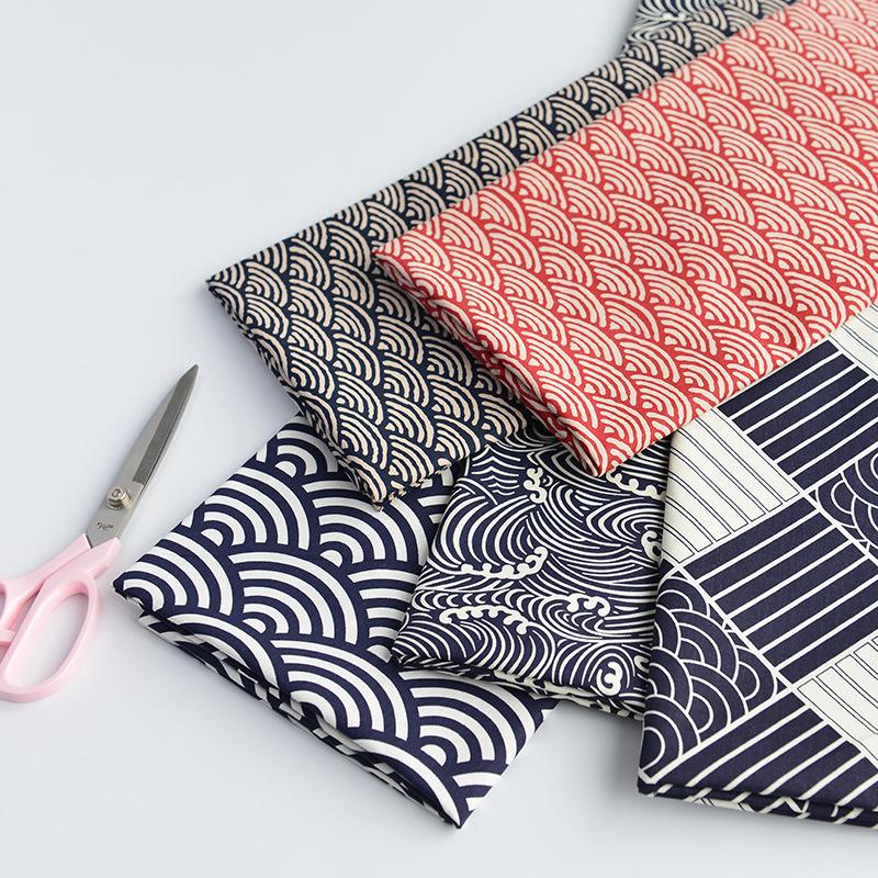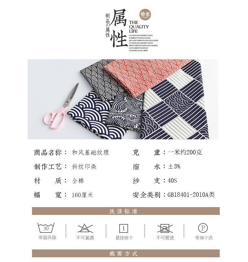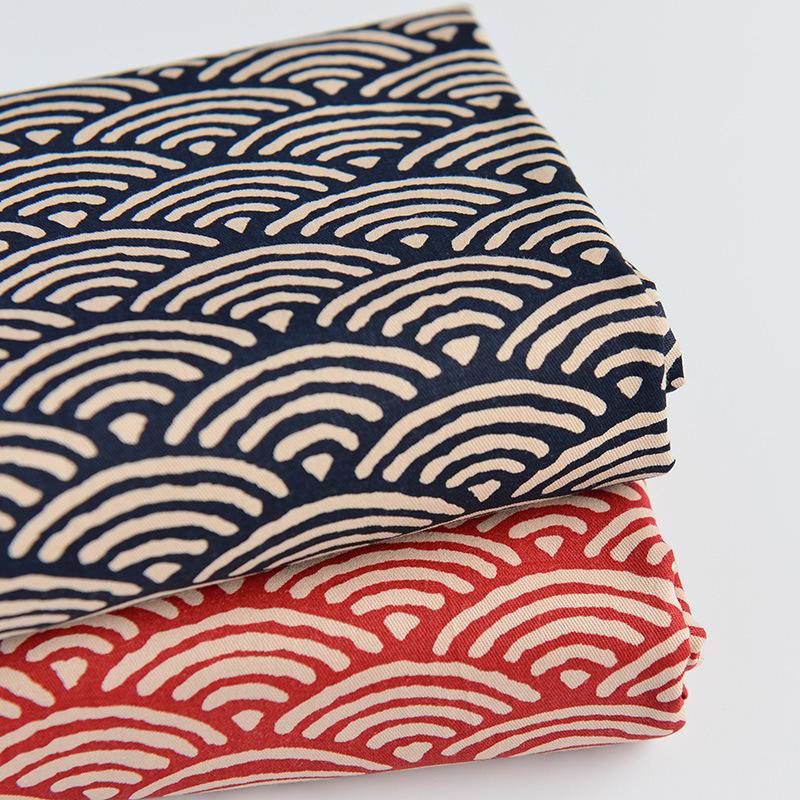 Tela de algodón puro, tela japonesa, estilo nacional antiguo, tela de algodón sarga, patrón de escamas de pescado, patrón básico de olas y viento