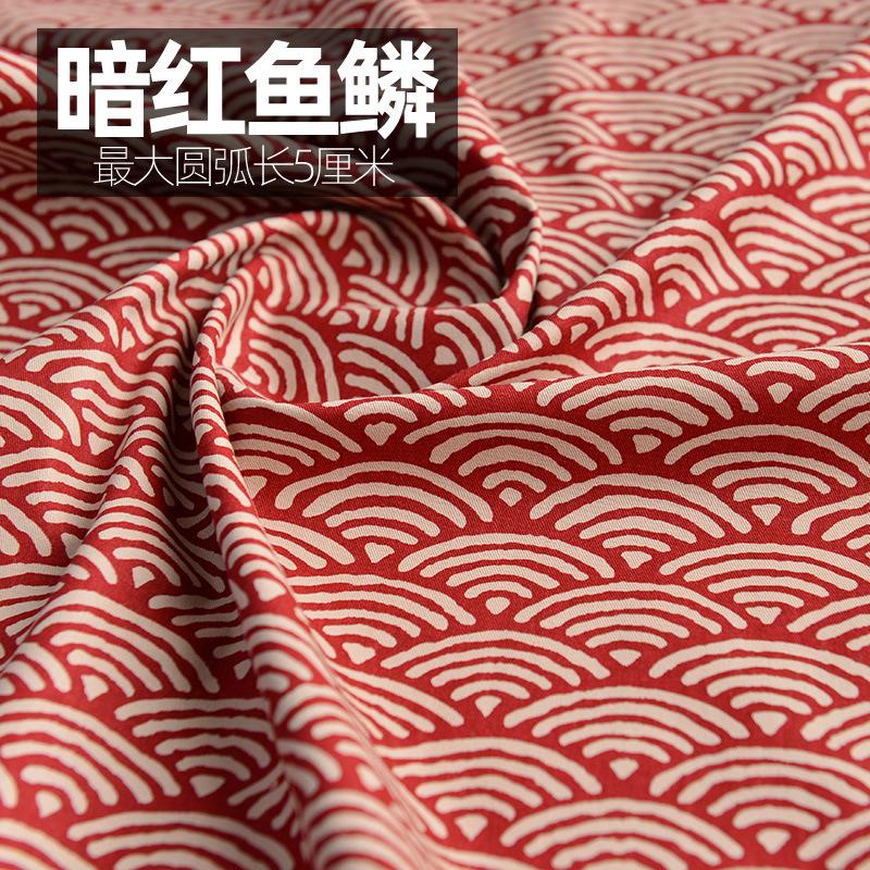 Square plaid pattern half a meter, Large fish scale pattern half a meter, Sea wave half a meter, Dark red fish...
