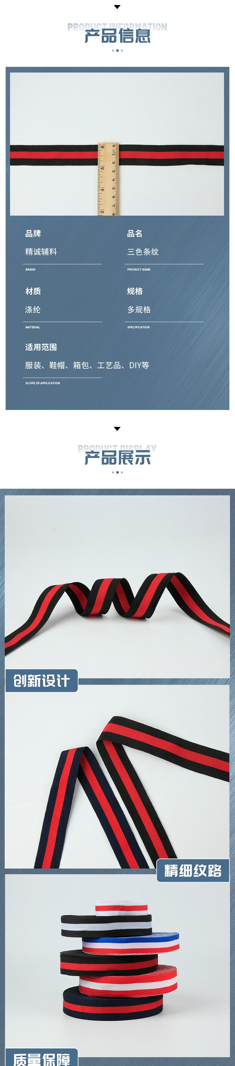 Cinta de poliéster tricolor a rayas, lisa, intercolor, para accesorios de ropa, cordón para equipaje y zapatos.