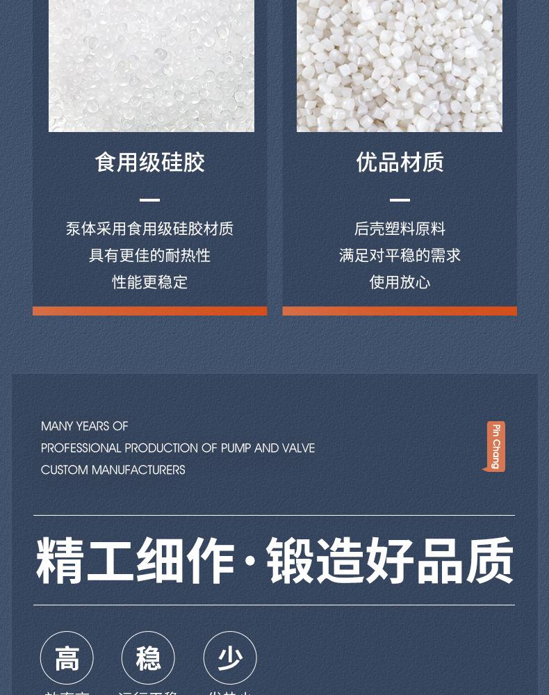 Jieyang Pinchang Intelligent Technology Co., Ltd. es una empresa especializada en la producción y el procesamiento de microbombas de agua, microbombas de aire, bombas de espuma, bombas de gel, bombas de vacío, bombas de oxígeno, bombas autocebantes, bombas de diafragma, bombas de oxígeno, bombas de aire 370, bombas de agua 370, bombas de vacío, bombas de agua y otros productos. Cuenta con un sistema de gestión de calidad completo y científico.