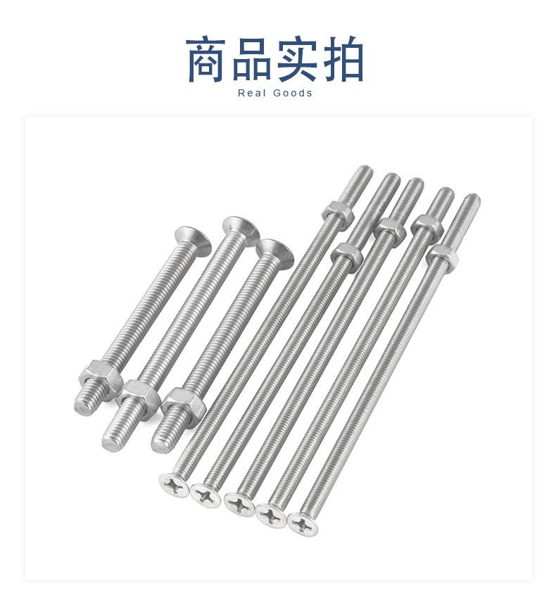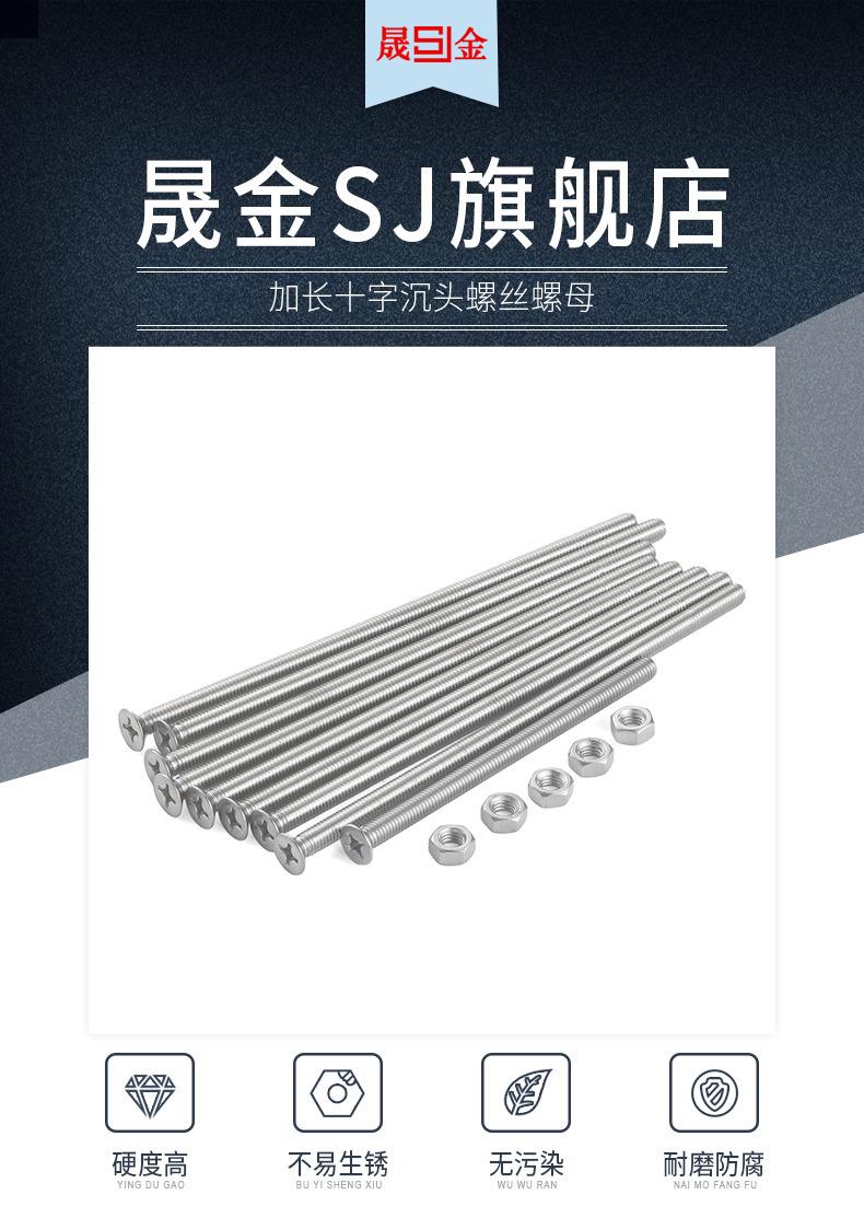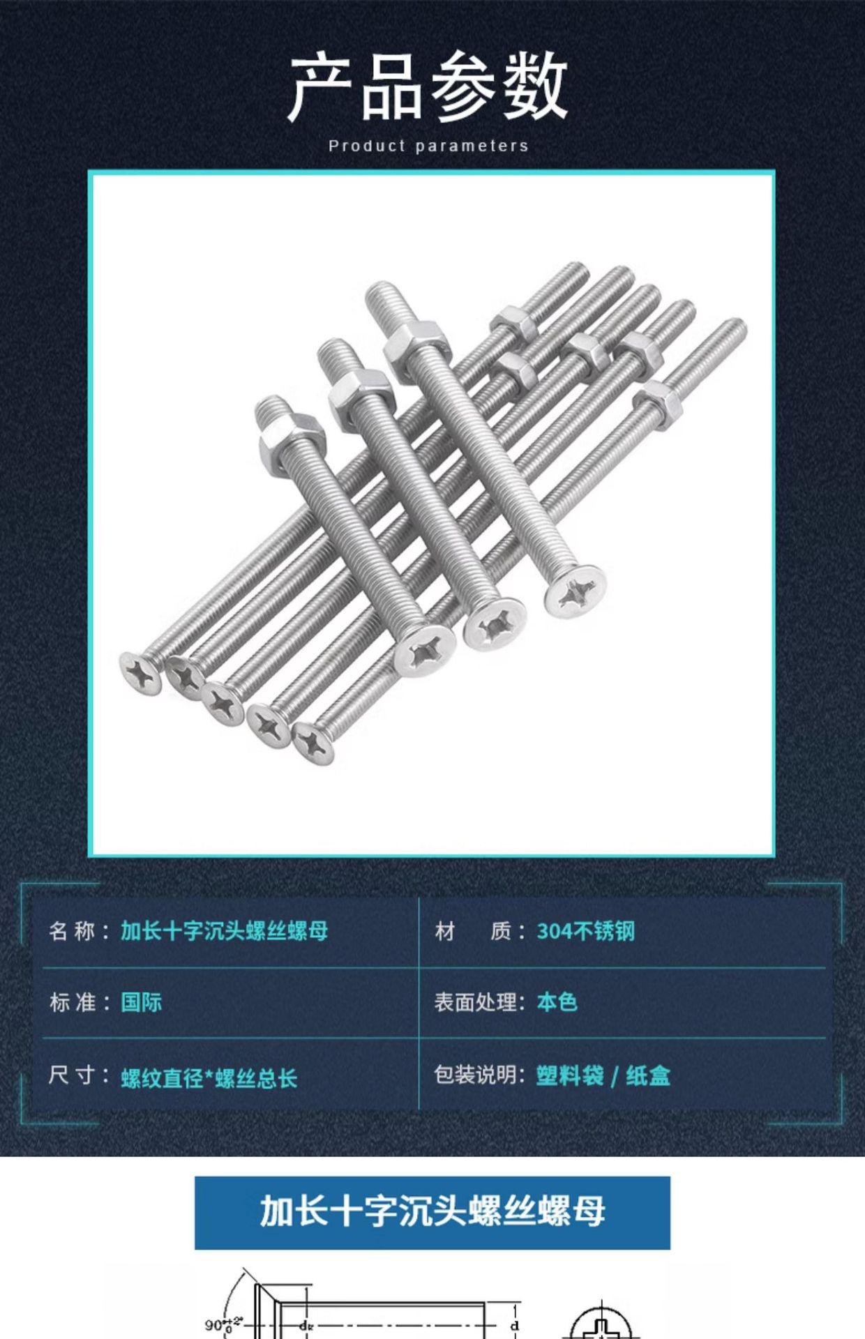 Tornillo de cabeza avellanada cruzada extendida de acero inoxidable 304, cabeza plana, varilla larga con tuerca M2M3M4M5M6