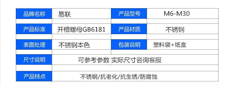 Tuerca ranurada hexagonal de acero inoxidable 304/316, tuerca de alta apertura con bloqueo ranurado GB6178/6181, venta al por mayor