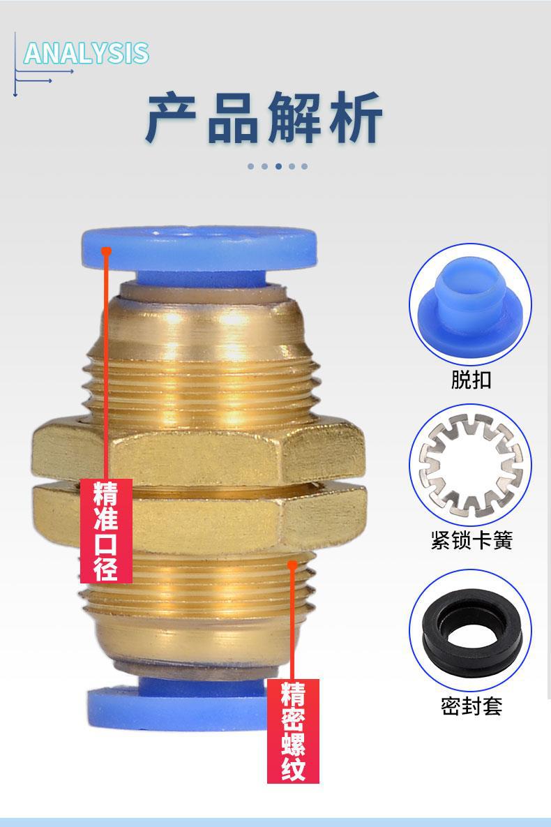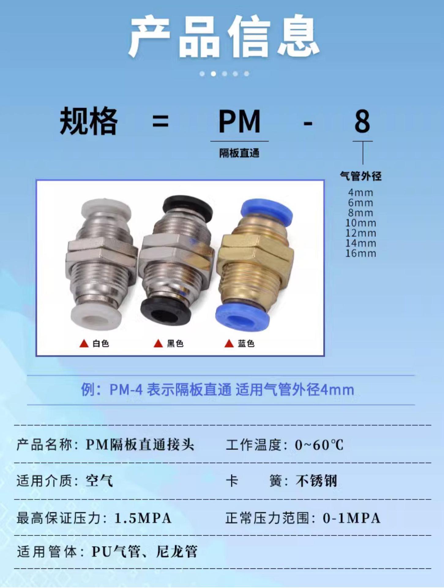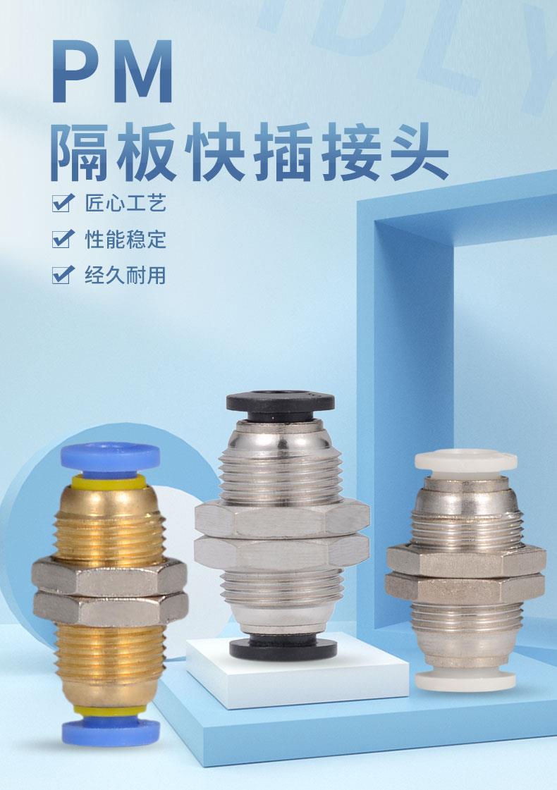 Conector Rápido PM Partición Conector Recto Placa de Cadena Tubo de Aire Neumático a través de Placa Conector Rápido 4/6/8/10/12mm