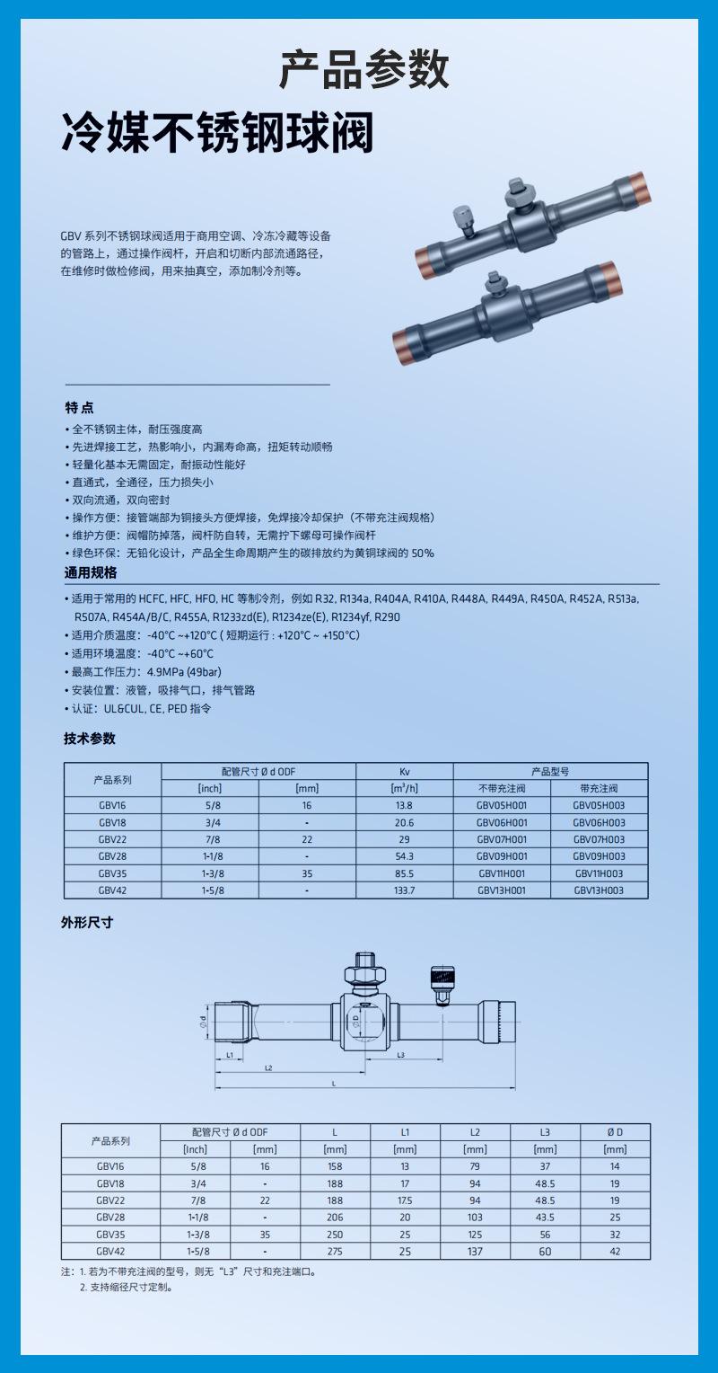 Válvula de refrigeración Sanhua Gbv, válvula de bola de acero inoxidable para refrigerante, para tuberías de equipos de refrigeración de aire acondicionado comercial.