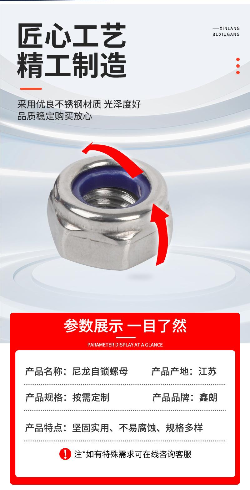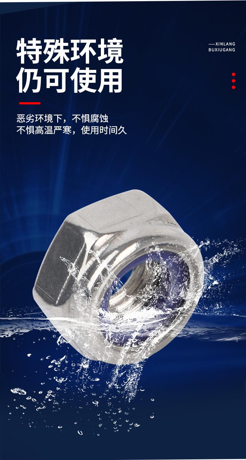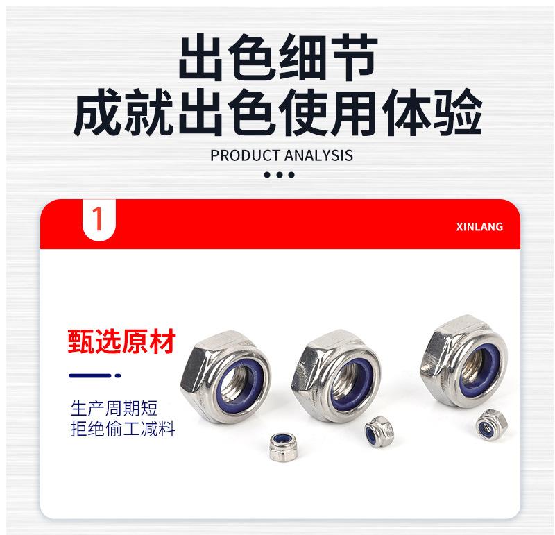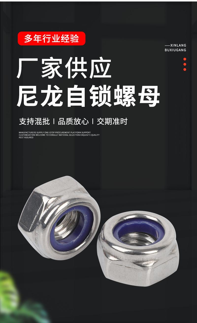 Tuerca de seguridad de acero inoxidable Tuerca de seguridad antideslizante Tuerca autoblocante de nailon hexagonal de acero inoxidable 304