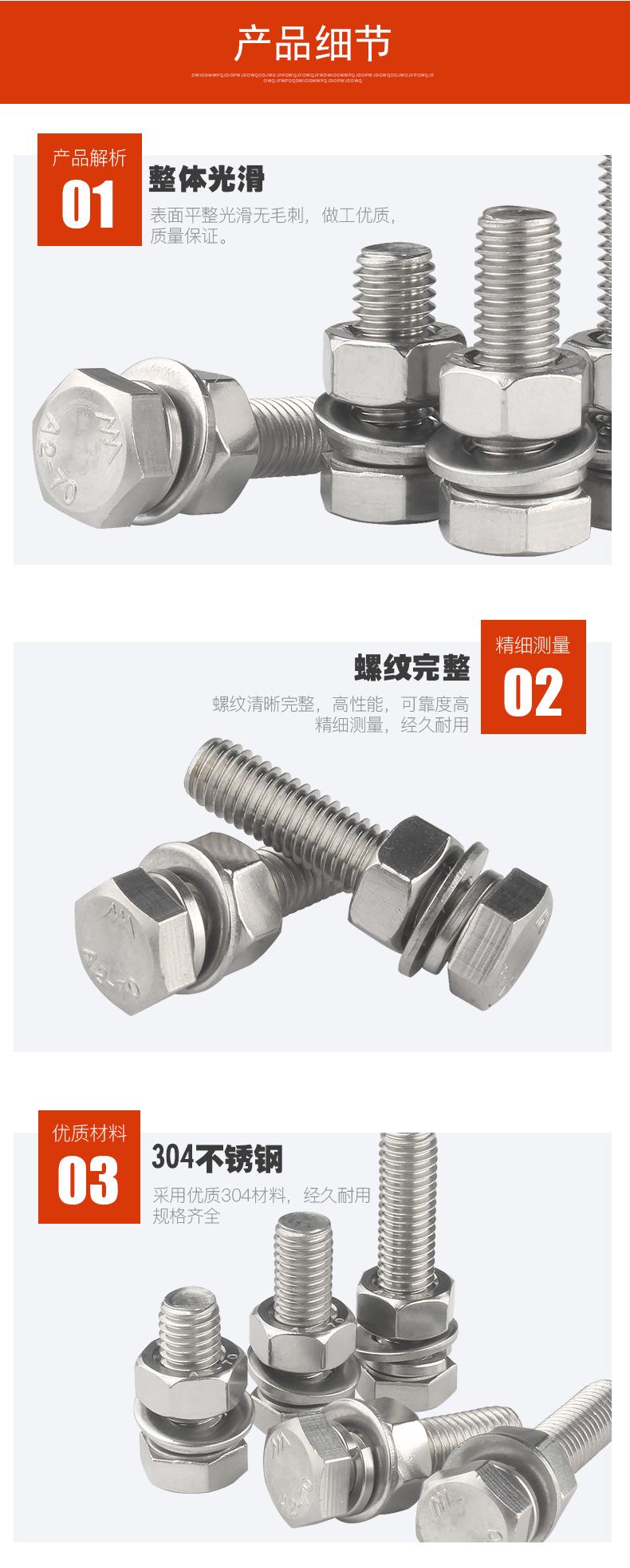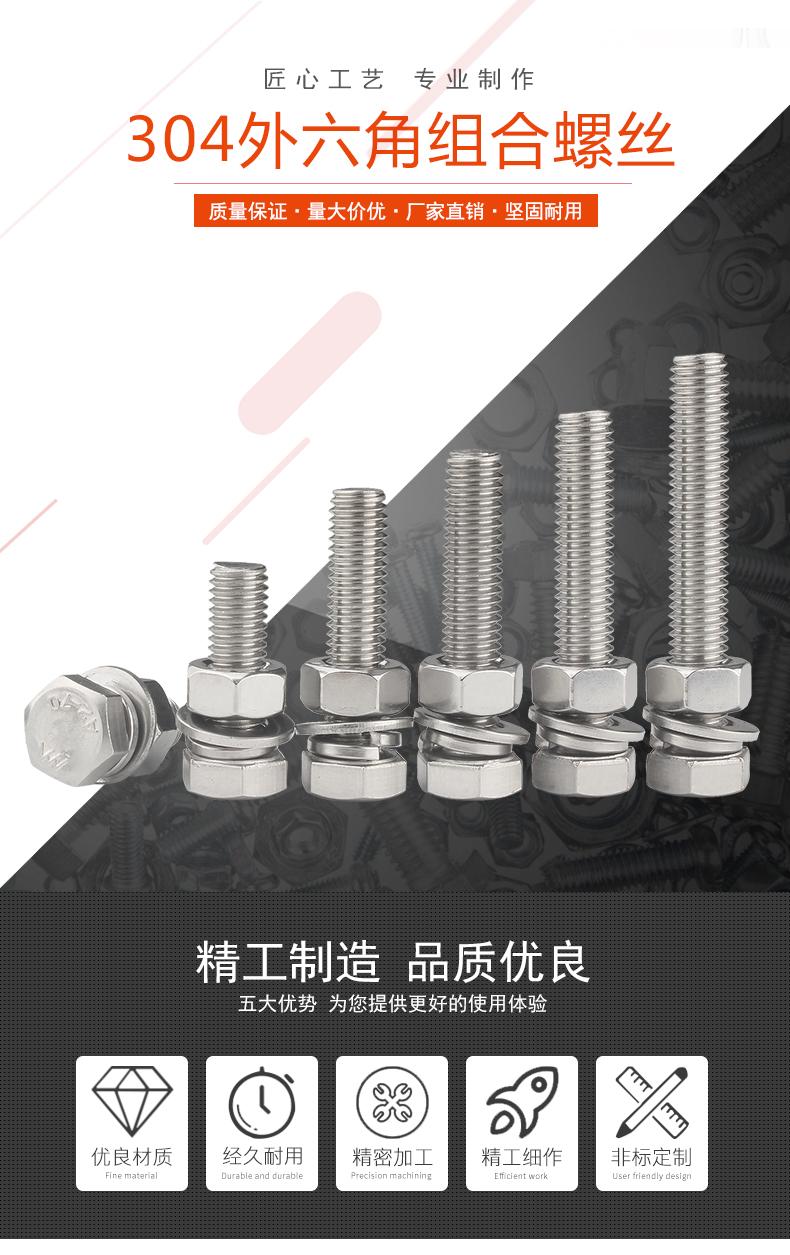 Perno Combinado Hexagonal Externo Acero Inoxidable 304 Tuerca de Tornillo Hexagonal Extendida M3M4M5M6M8 Tornillo Estándar Nacional