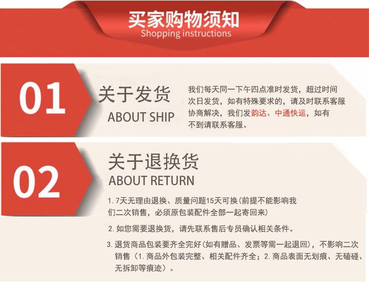 Si tiene algún problema durante la recepción, la instalación o el uso, no dude en contactarnos. Podemos brindarle asesoramiento profesional en cualquier momento. Si detecta algún problema de calidad con el producto (no es artificial ni usado) después de recibirlo y necesita devolverlo o cambiarlo, lo devolveremos o cambiaremos sin condiciones tras la confirmación y nos haremos cargo de los gastos correspondientes. Una vez vendido un producto personalizado, no se podrá devolver ni cambiar a menos que no cumpla con los requisitos de personalización.