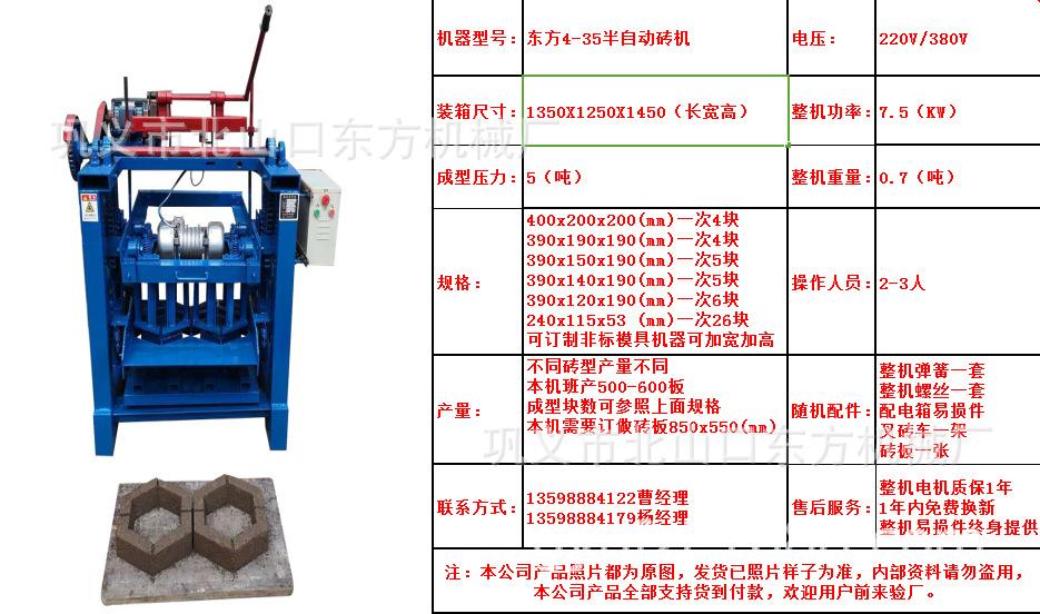 Máquina semiautomática para fabricar ladrillos de cemento 4-35, máquina para fabricar ladrillos huecos, molde para baldosas de pavimento y ladrillos para plantación de césped, se puede reemplazar con una máquina multiusos.