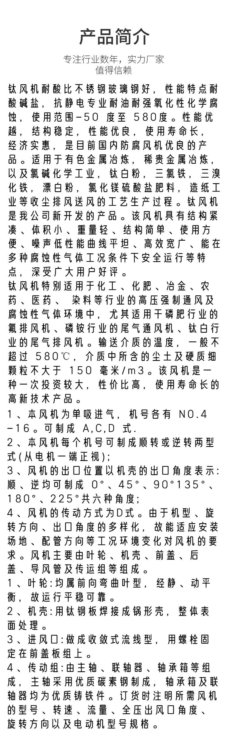 Ventilador de Titanio Marca Platinum Huai Ventilador de Aleación de Titanio Resistente a Ácidos y Álcalis Ventilador Centrífugo Anticorrosivo