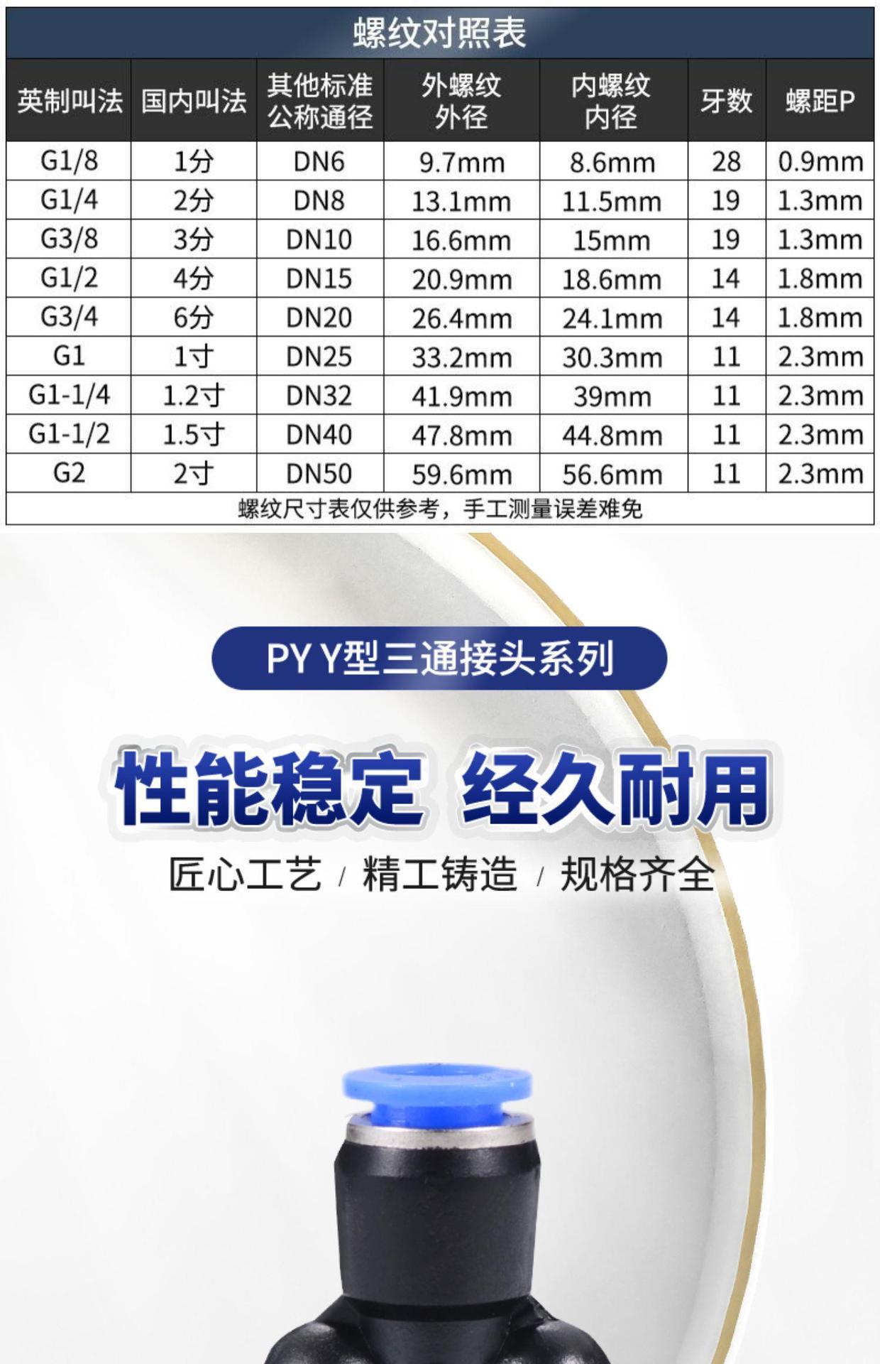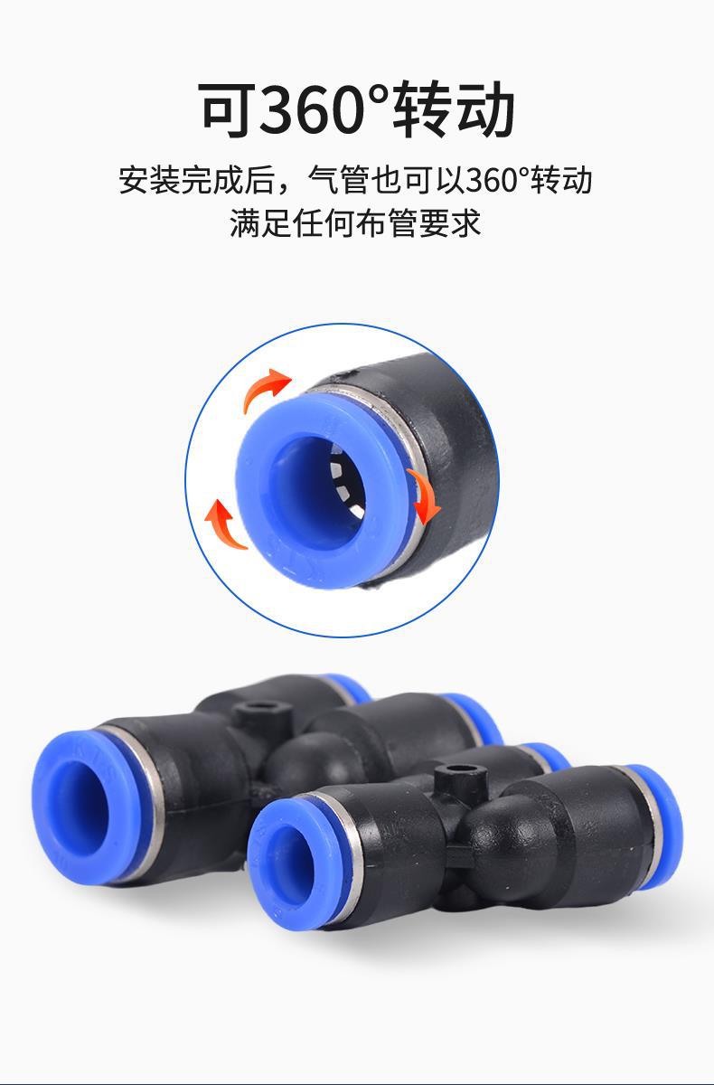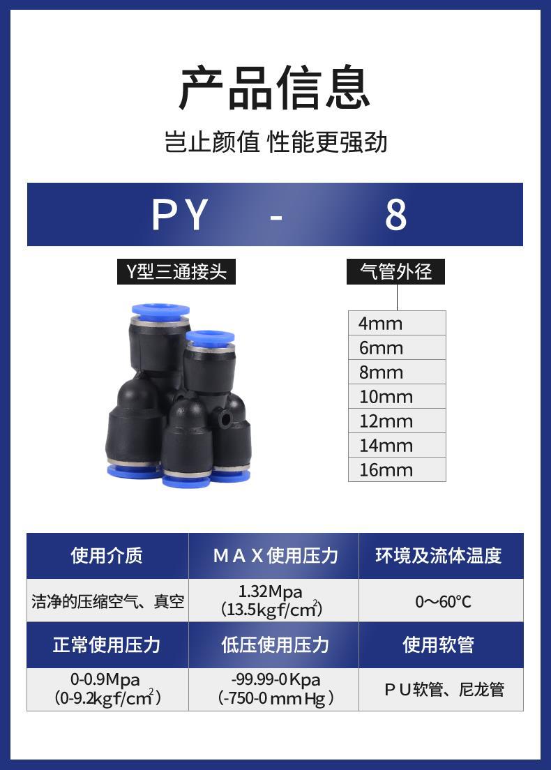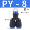 Conector rápido PY de tres vías con diámetro igual para tráquea, tipo Y, para componentes neumáticos, 4/6/8/10/12/16 mm