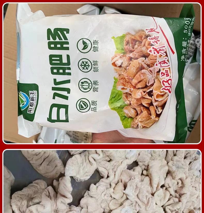Salchicha de grasa completamente cocida, venta al por mayor, ingredientes para ollas calientes de restaurante, comercial, sin lavado, desengrasante, intestino de cerdo, caja entera, alimento congelado para intestinos