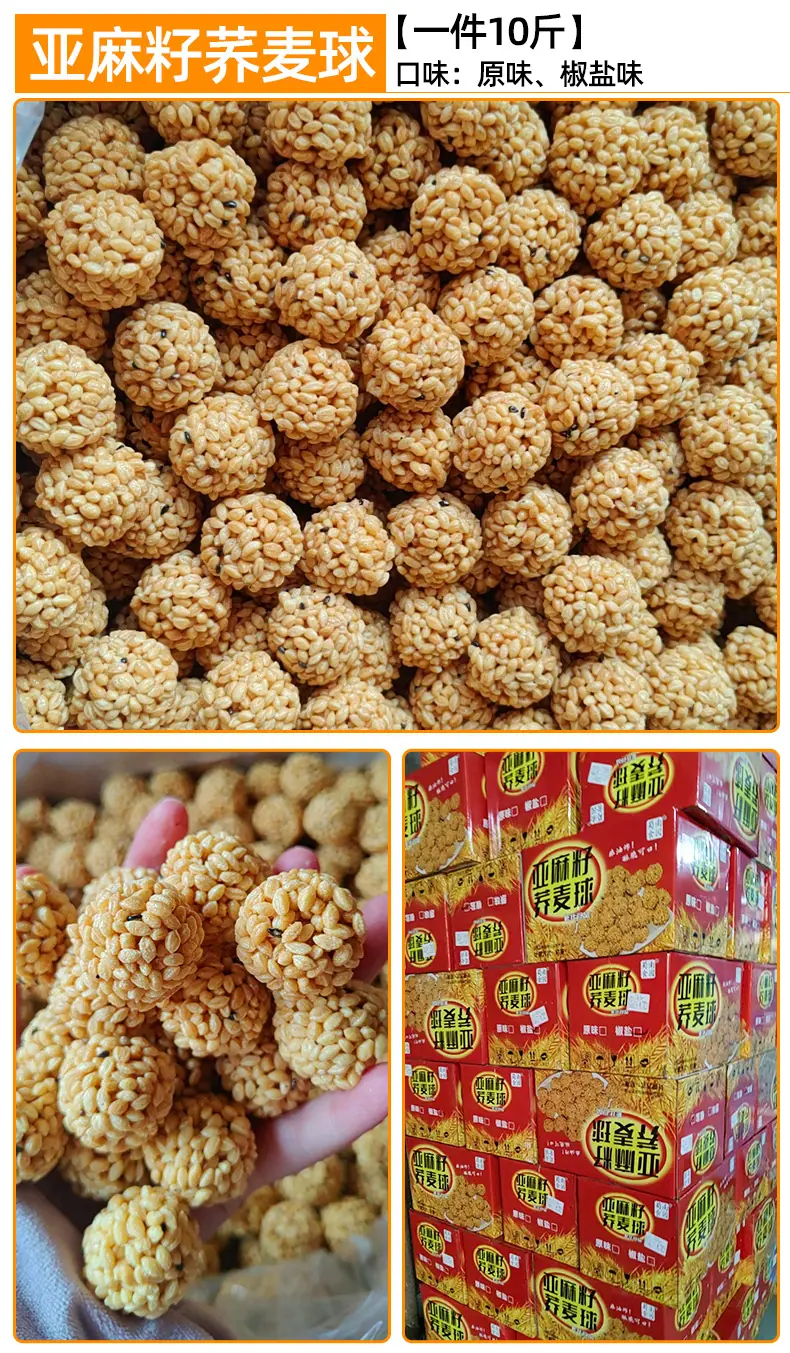 Snacks horneados de semillas de lino Snacks listos para comer Venta al por mayor para puestos de mercado Comercio transfronterizo Alimentos inflados Bolas de trigo sarraceno