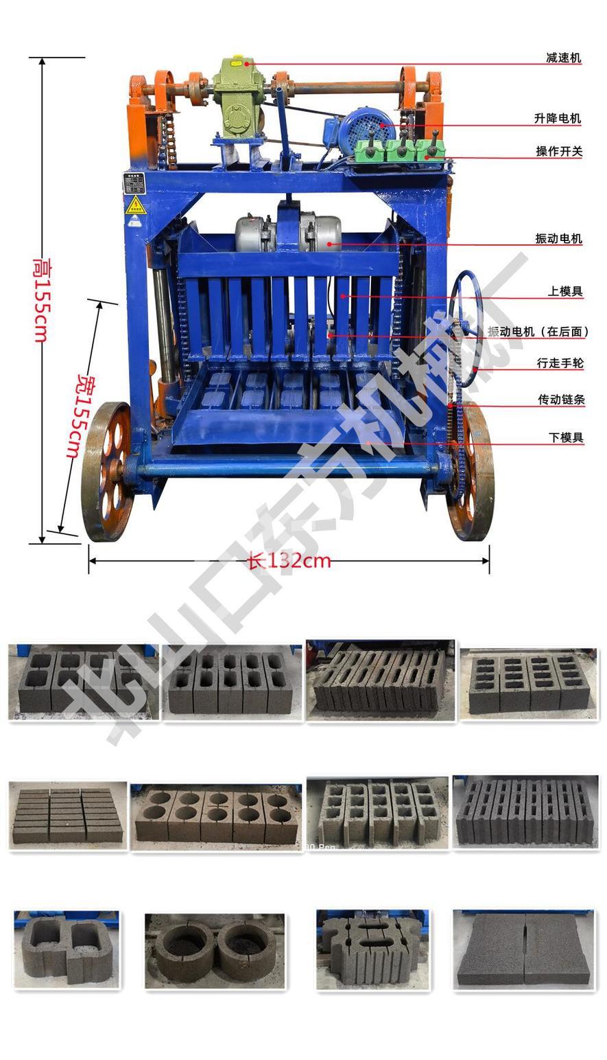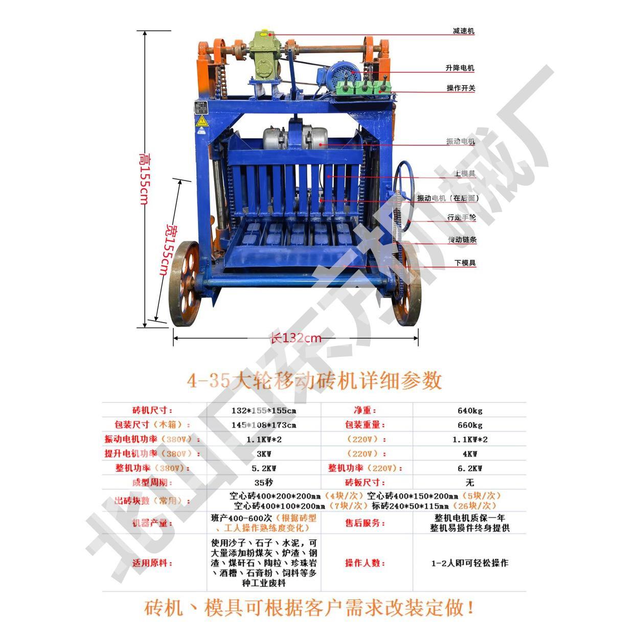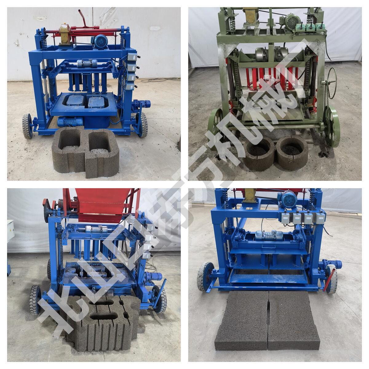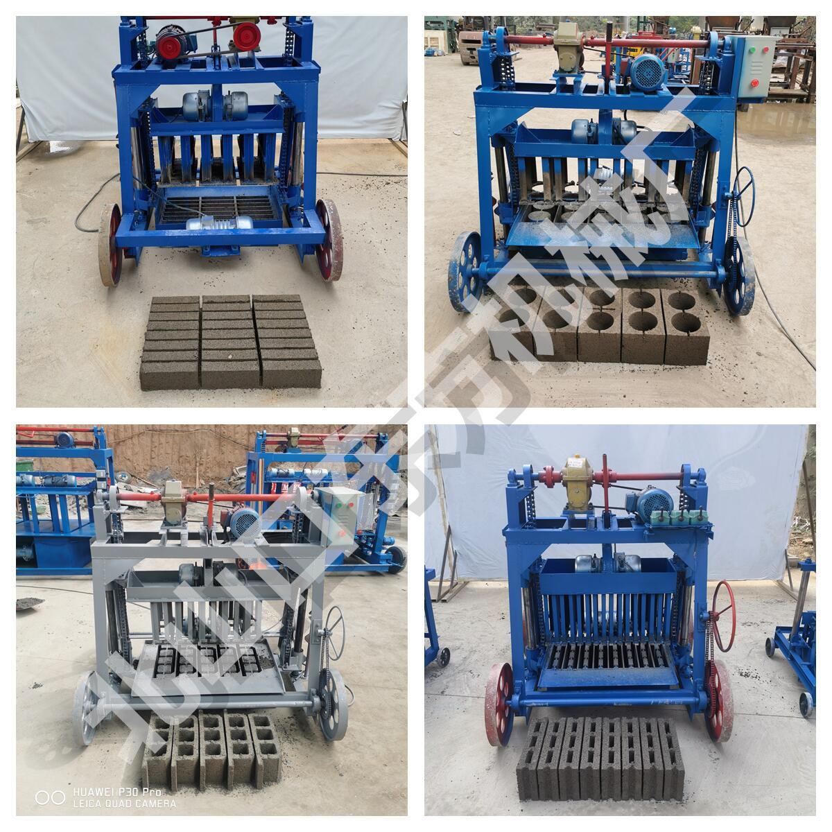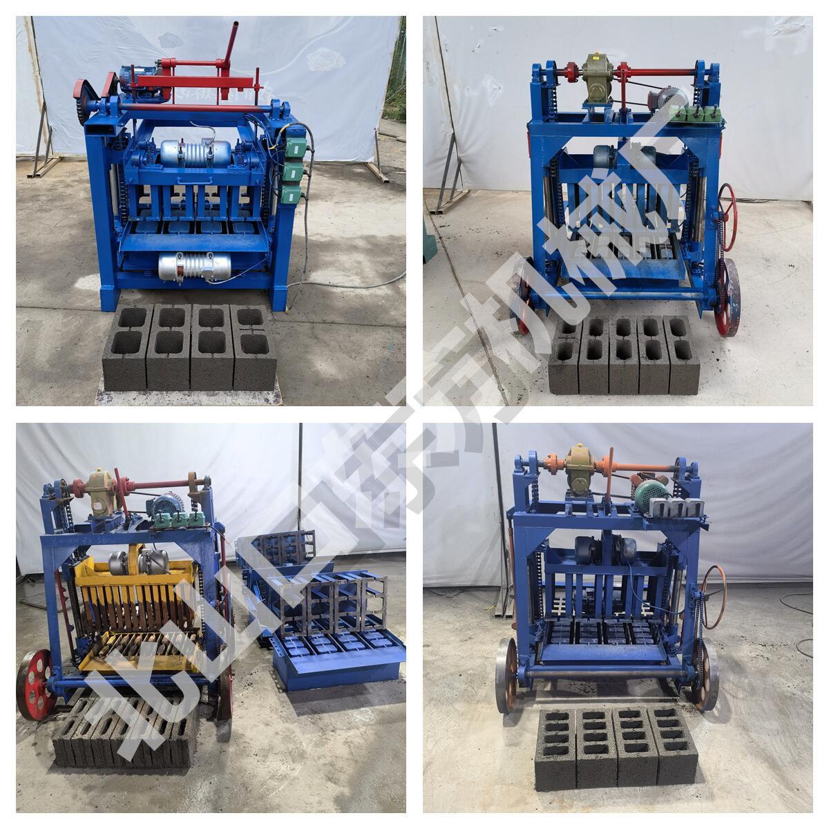 Máquina semiautomática para fabricar ladrillos de cemento móviles con ruedas grandes de 4-45 pulgadas. Molde para baldosas de pavimento de ladrillos de plantación de césped de 8 caracteres que se puede reemplazar con una sola máquina.