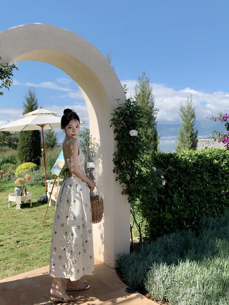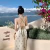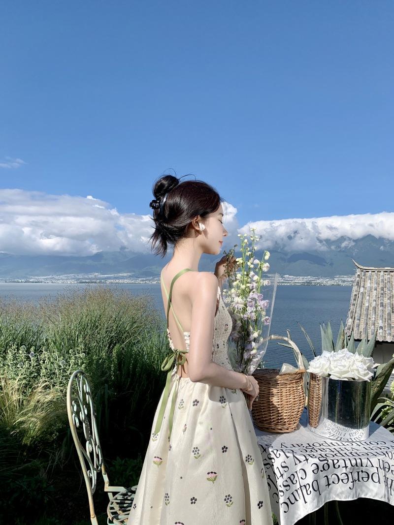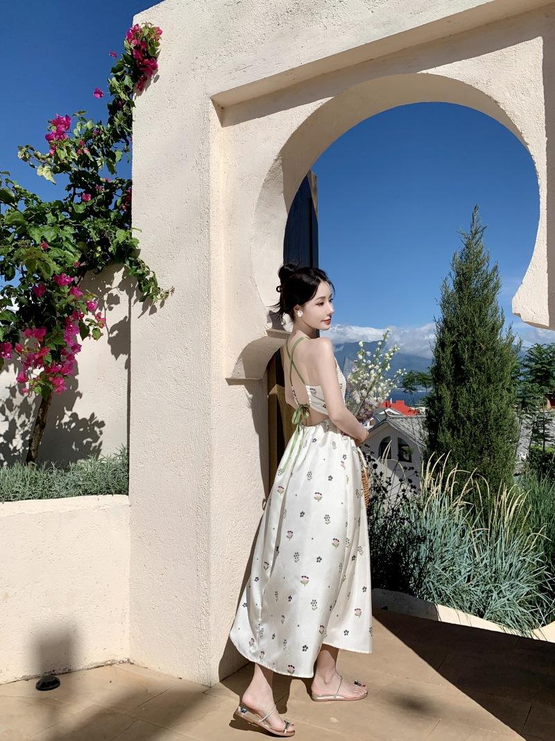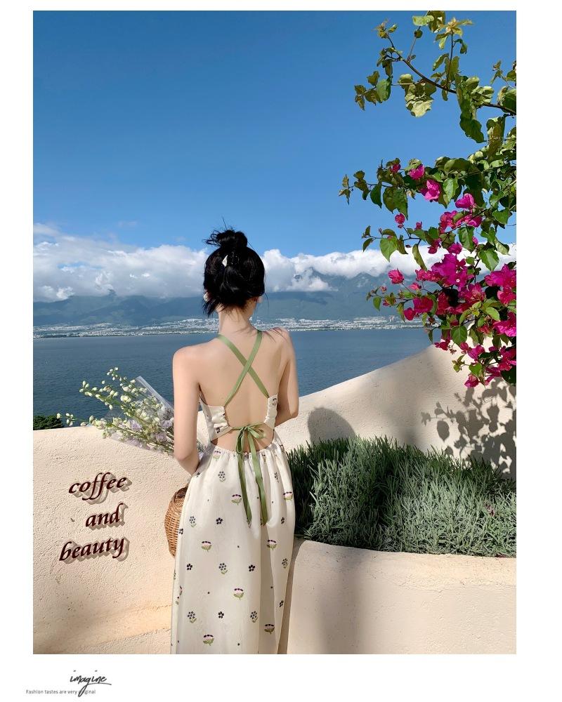 Los tirantes cruzados sin espalda permiten que el elegante cuello de cisne siga mostrándose como una ventaja.