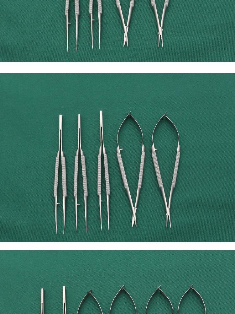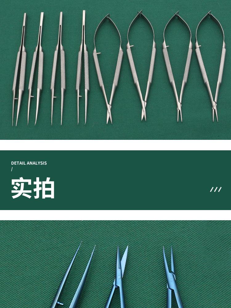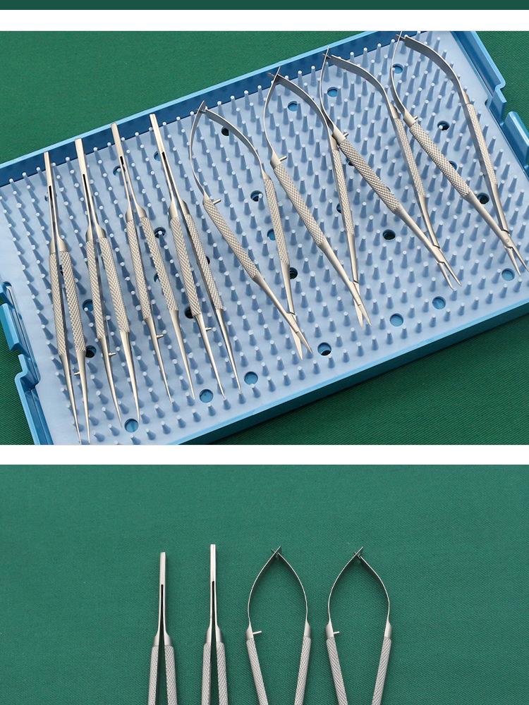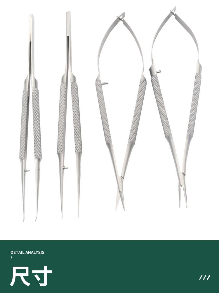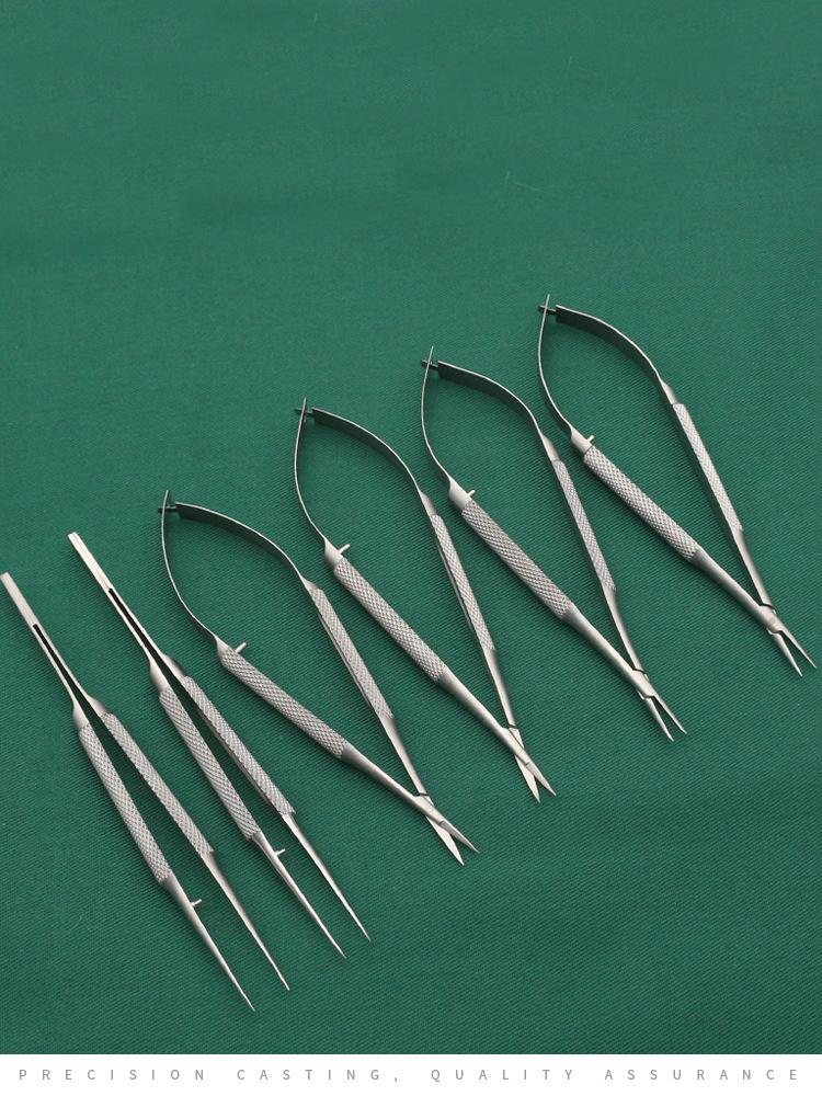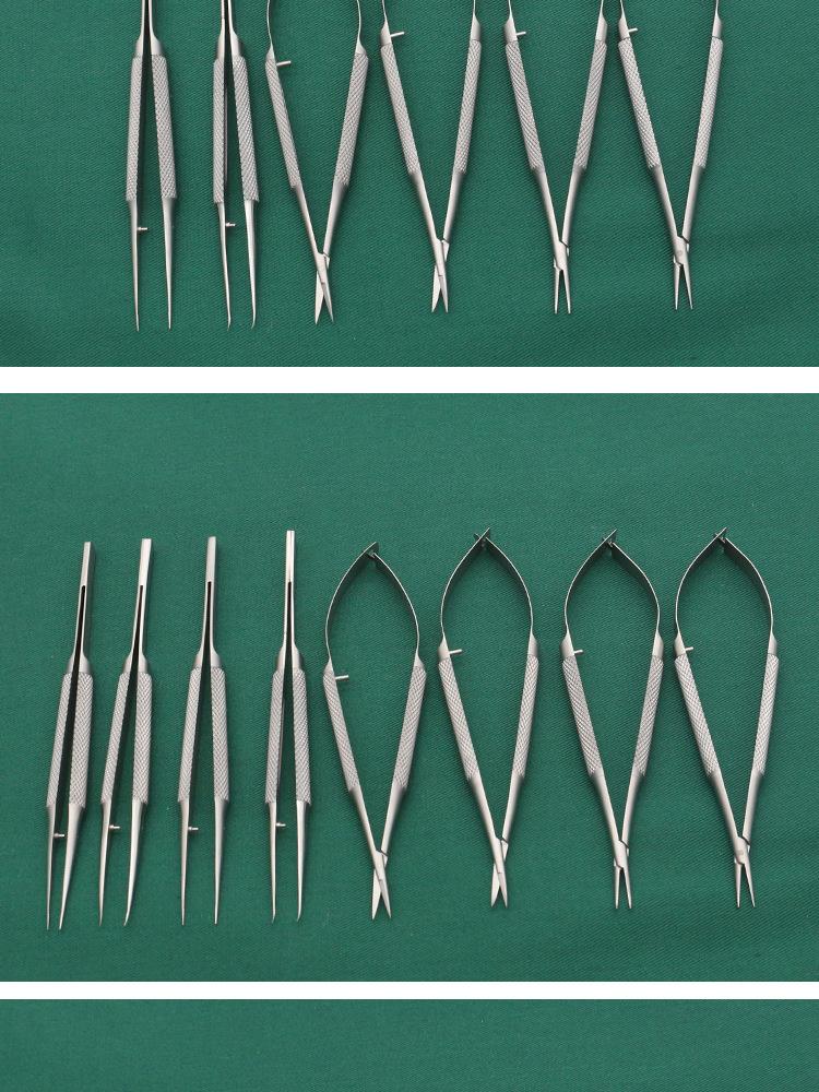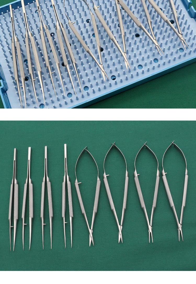 Oftalmología Cirugía de mano Juego de instrumentos microquirúrgicos Tijeras corneales Fórceps para ojos Fórceps para sujetar microagujas Instrumento microquirúrgico