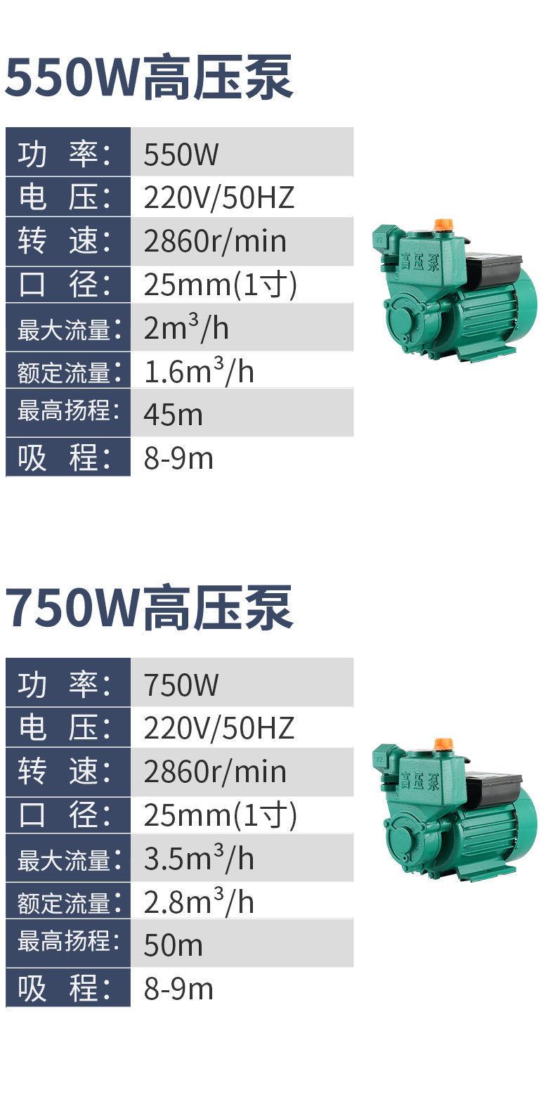 1.1kw high pressure pump head 55m 1inch automatic start and stop