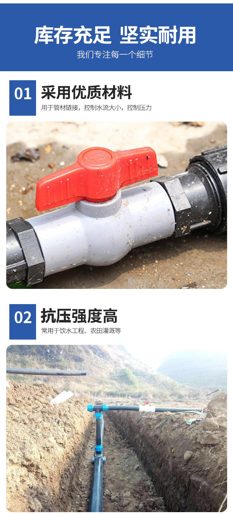Válvula de Bola de PVC Tres Vías Rosca Externa Rosca Interna 50mm Tubo de Riego por Goteo Enchufe Interfaz Interruptor Válvula de Agua Accesorios de Tubería Tubo de PE Manguera de Agua