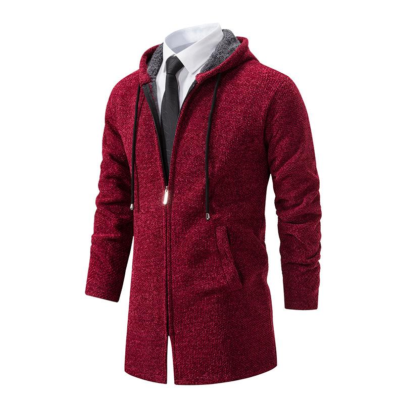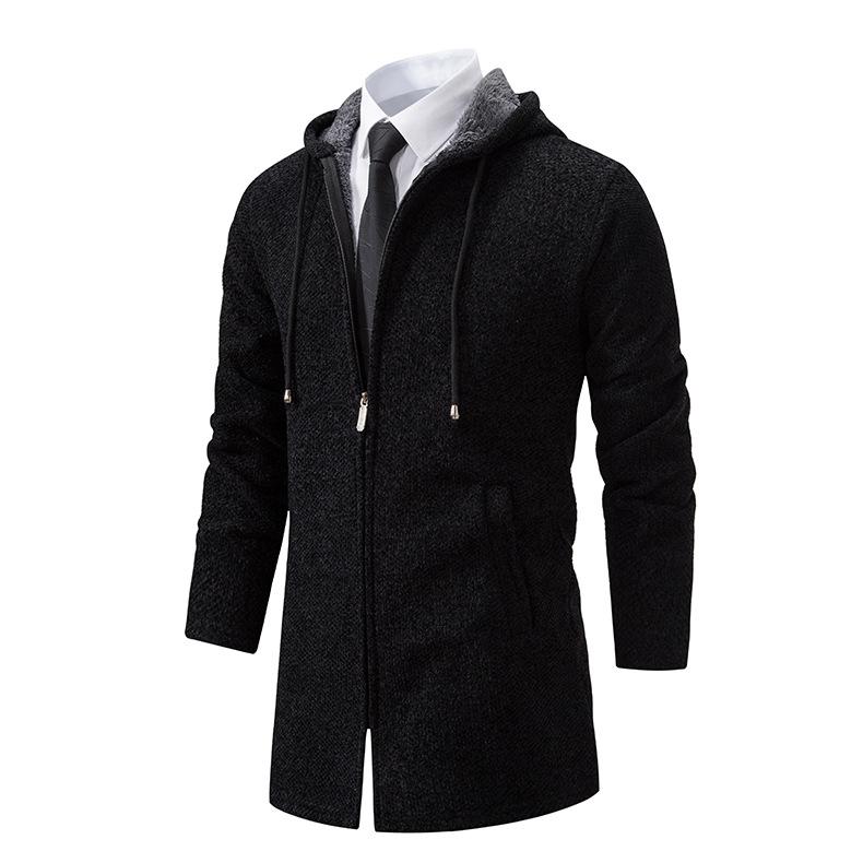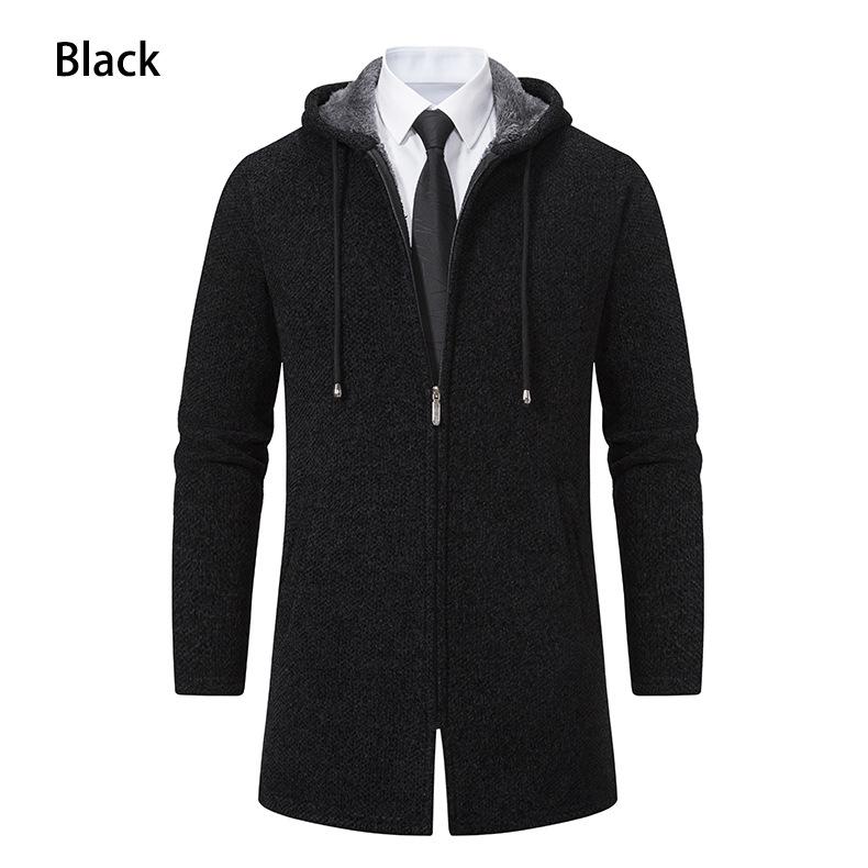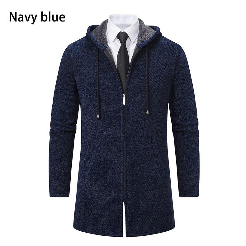Suéter con capucha para hombre, otoño e invierno 2023, suéter de longitud media con forro polar, cárdigan grueso, tendencia de moda