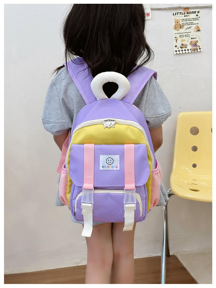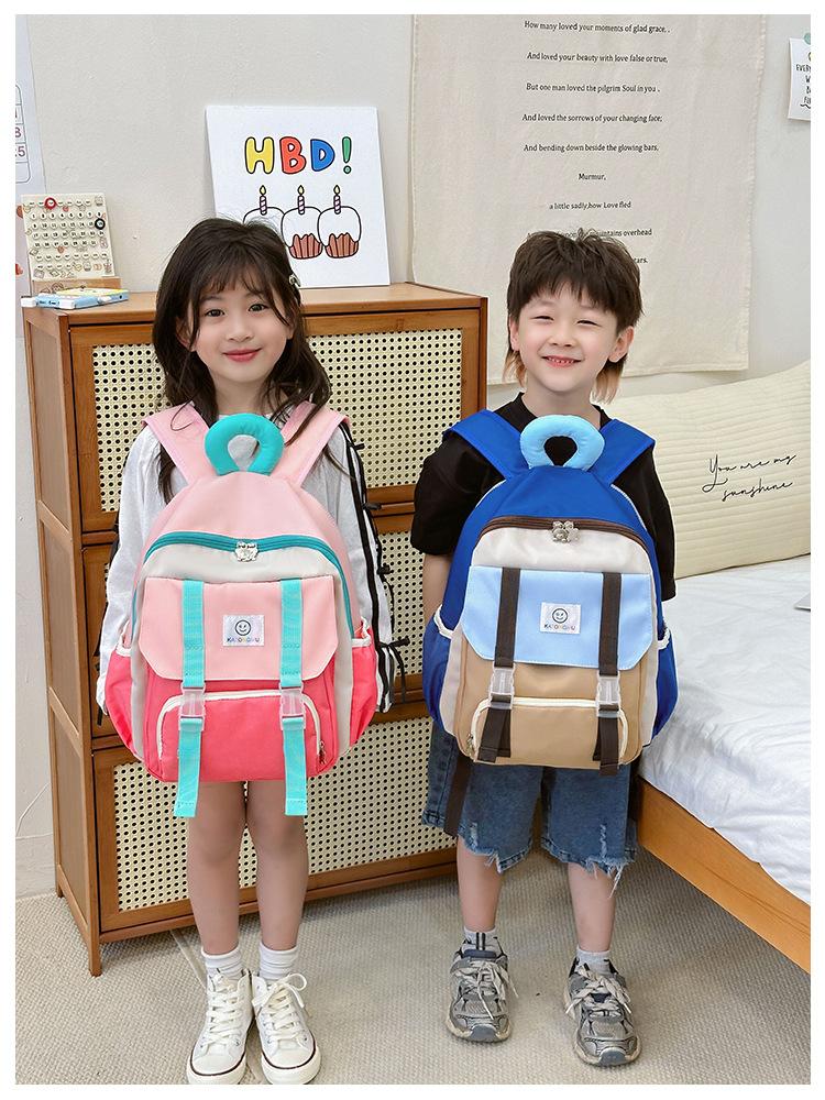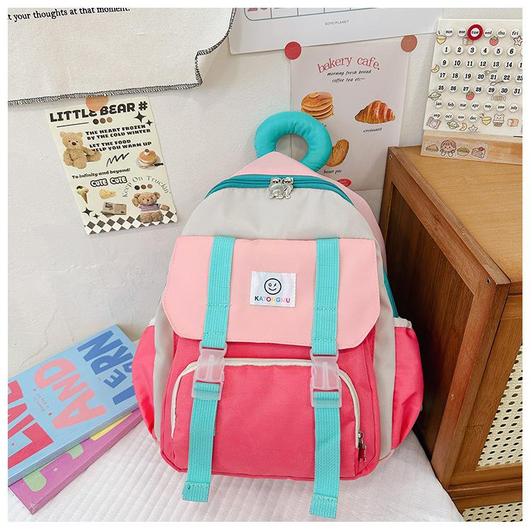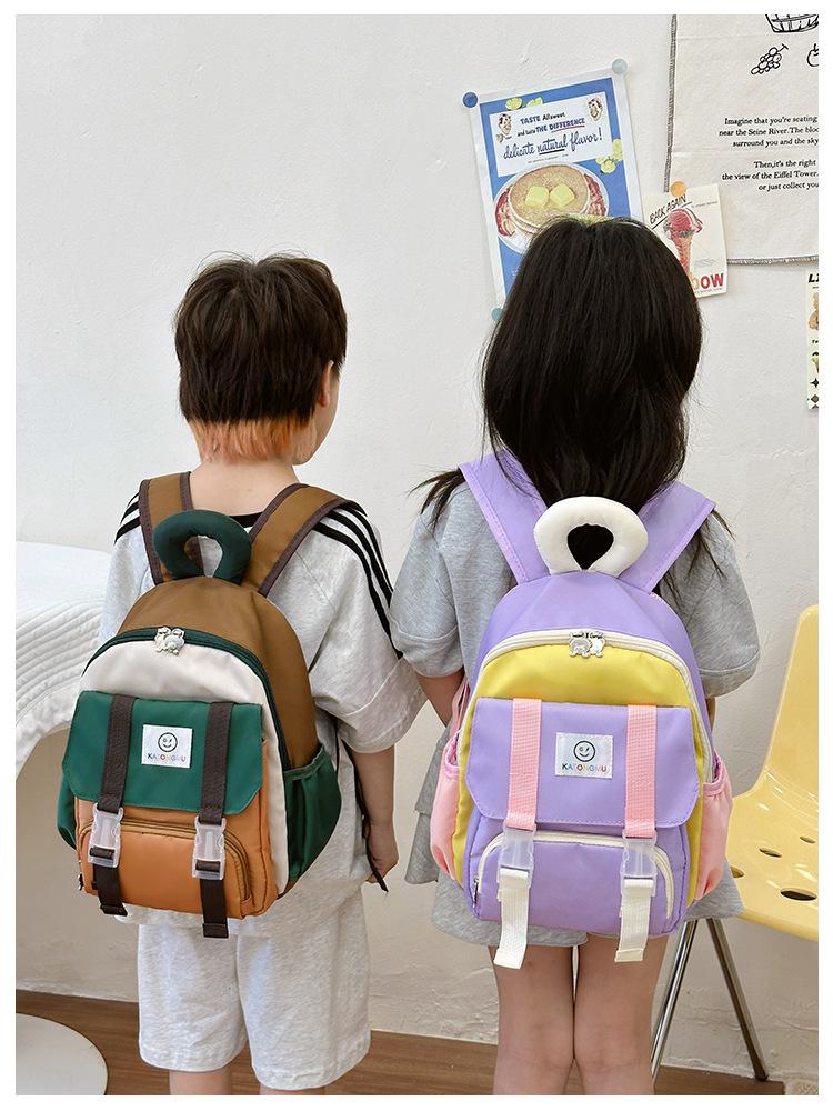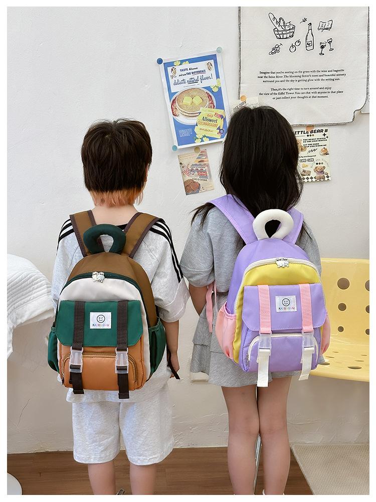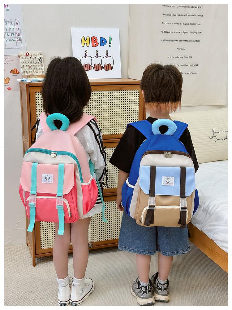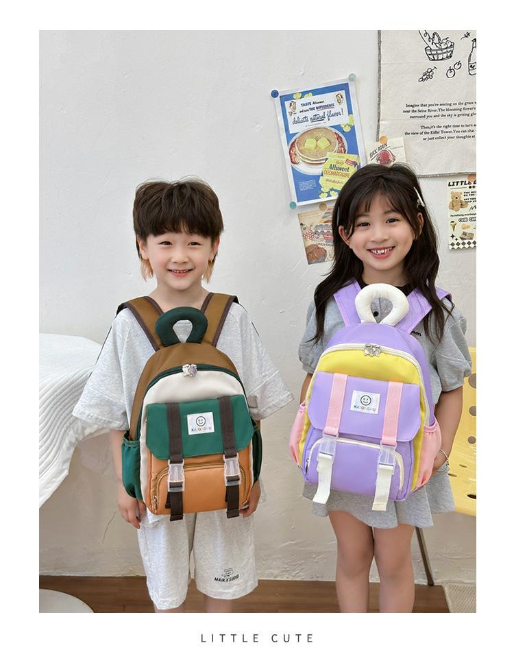 Mochila para Niños 2025 Nueva Coreana Color Contraste Ligera Mochila Escolar para Jardín de Niños Algodón Relleno Portátil Mochila con Letras