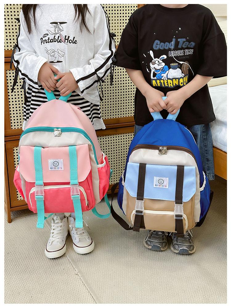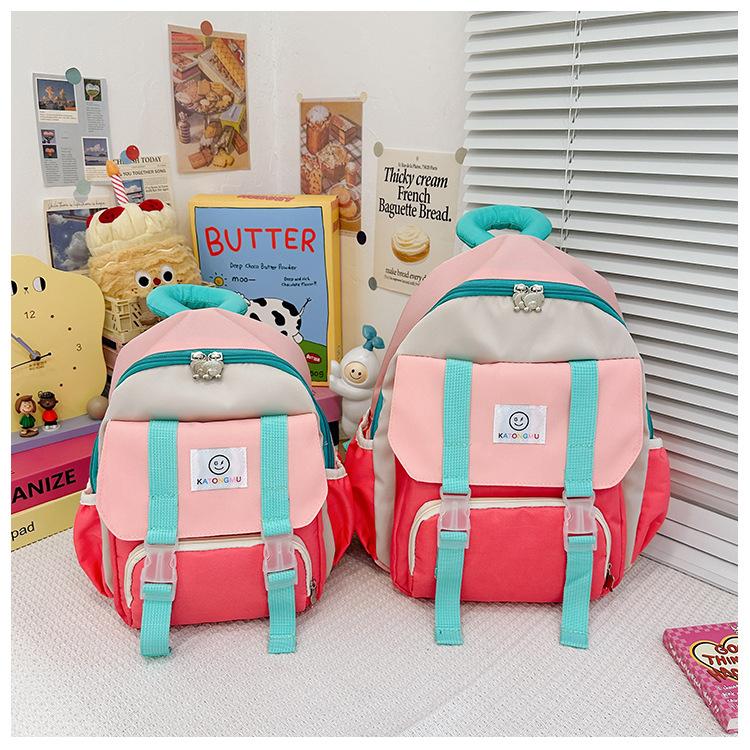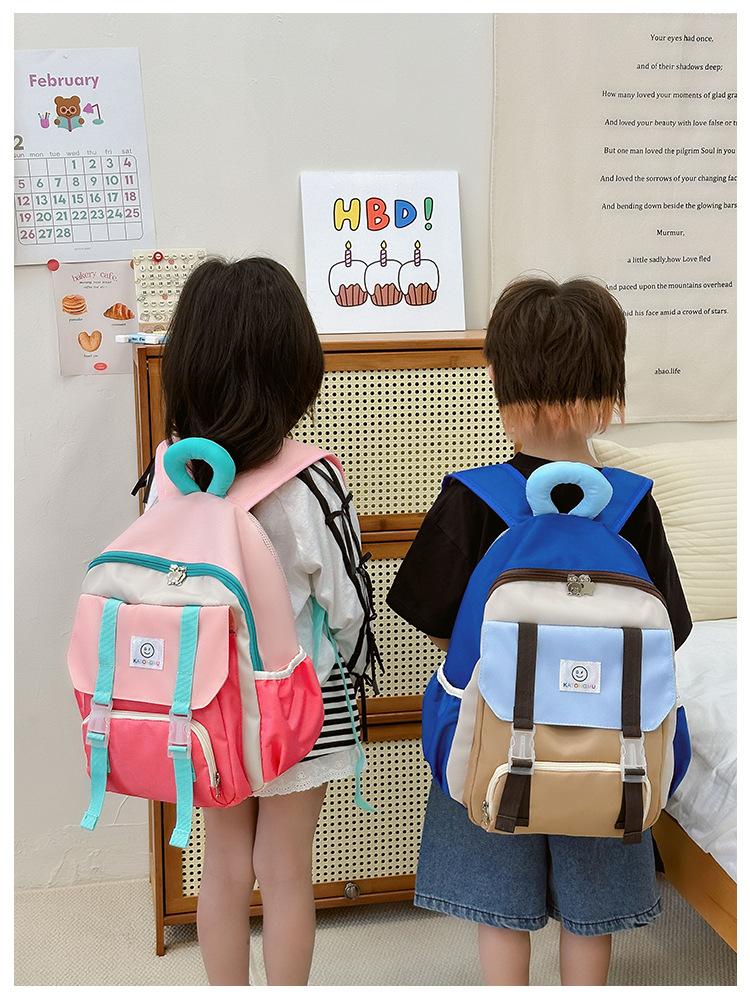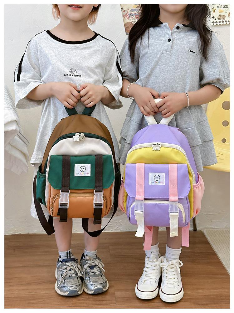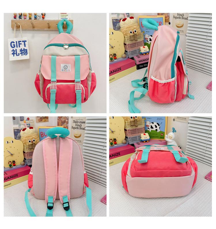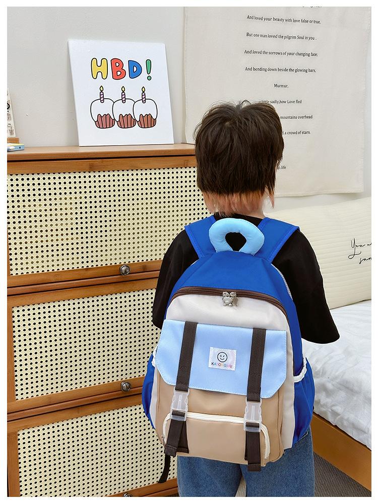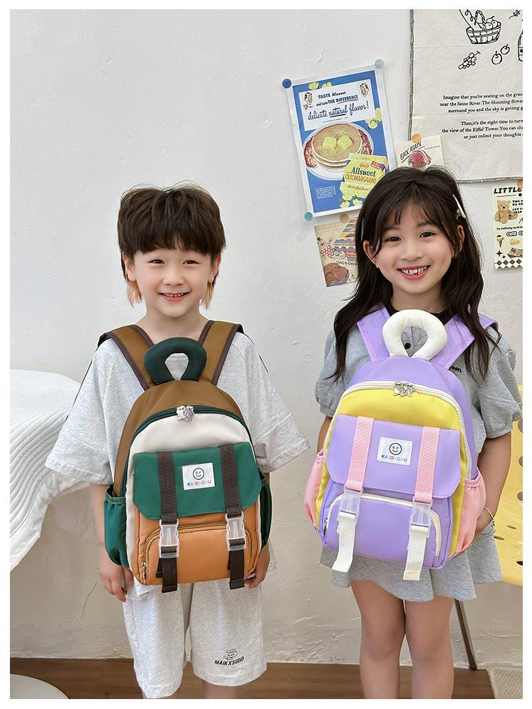 Mochila para Niños 2025 Nueva Coreana Color Contraste Ligera Mochila Escolar para Jardín de Niños Algodón Relleno Portátil Mochila con Letras