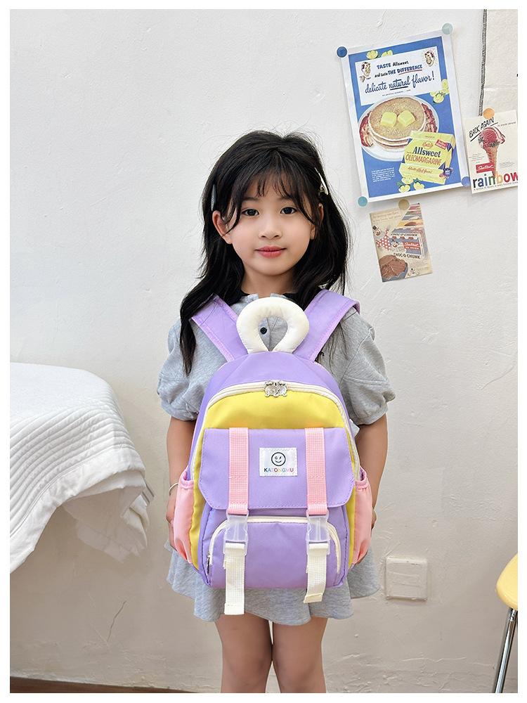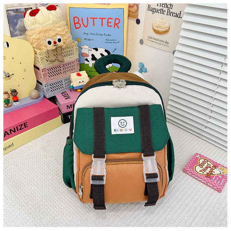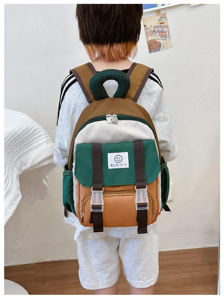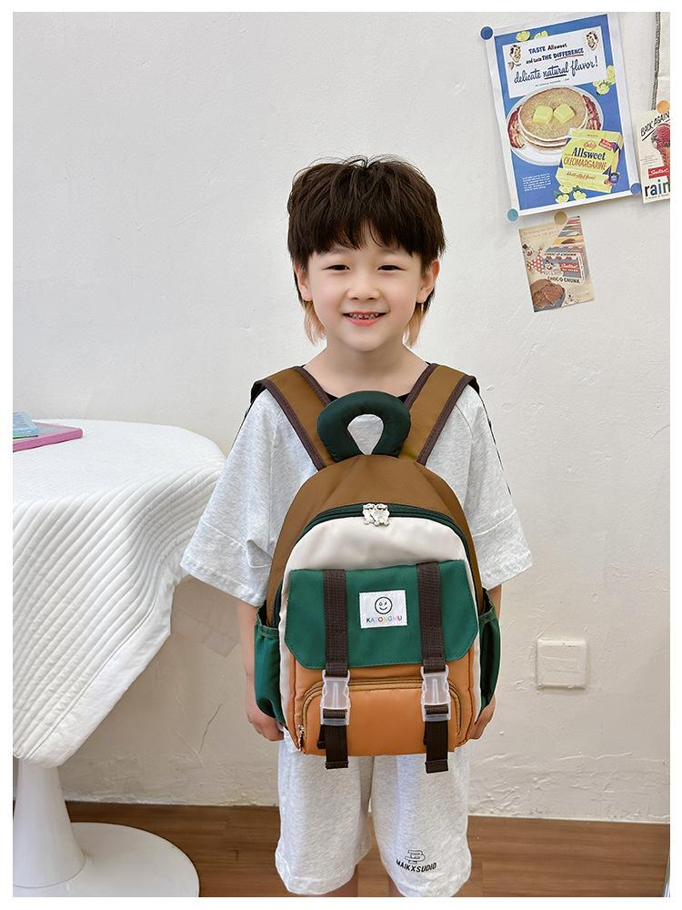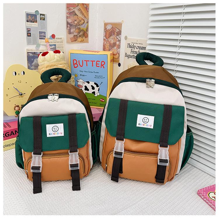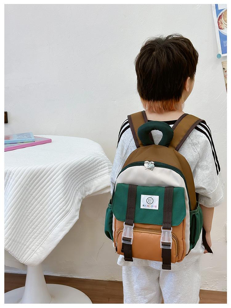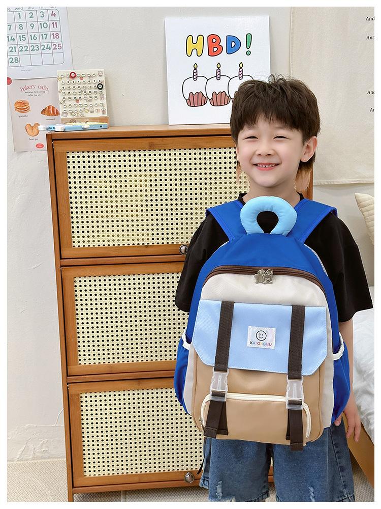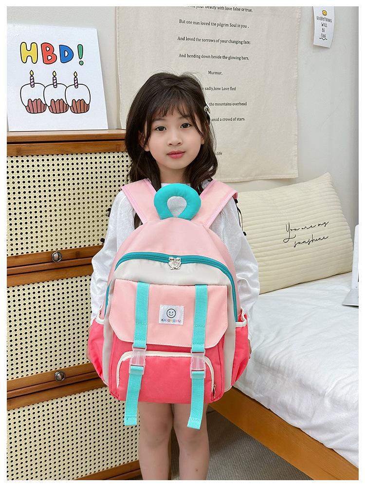 Mochila para Niños 2025 Nueva Coreana Color Contraste Ligera Mochila Escolar para Jardín de Niños Algodón Relleno Portátil Mochila con Letras
