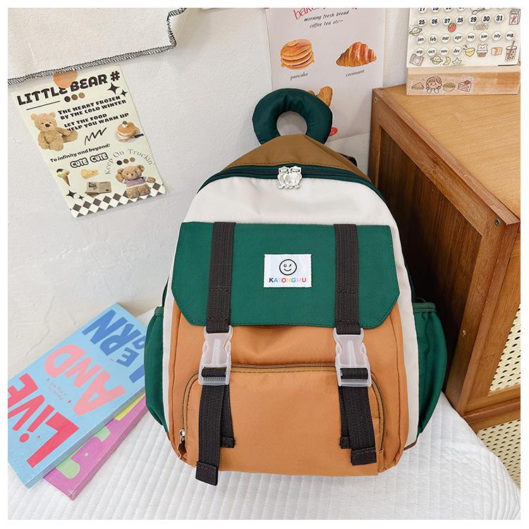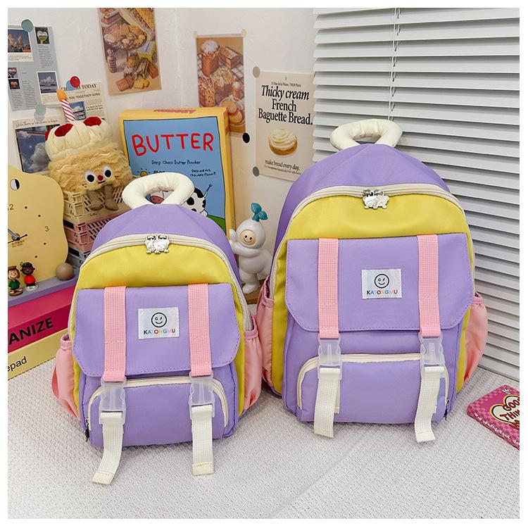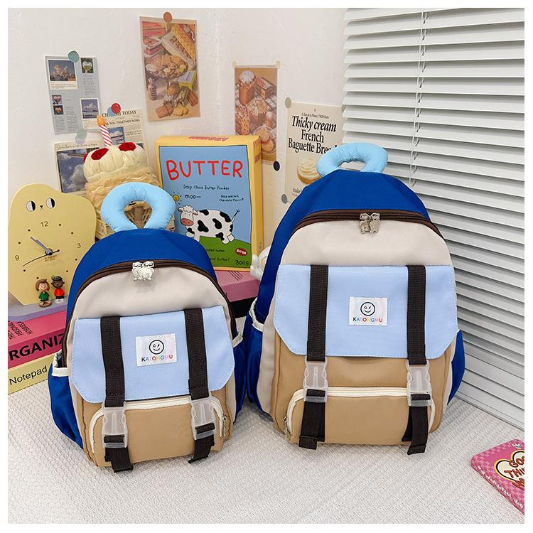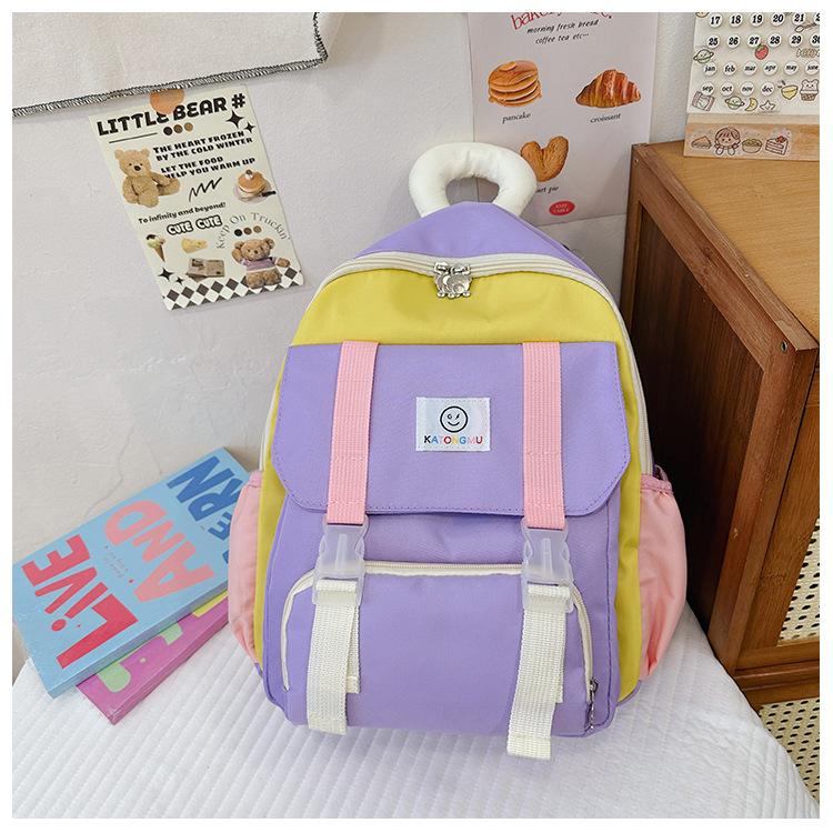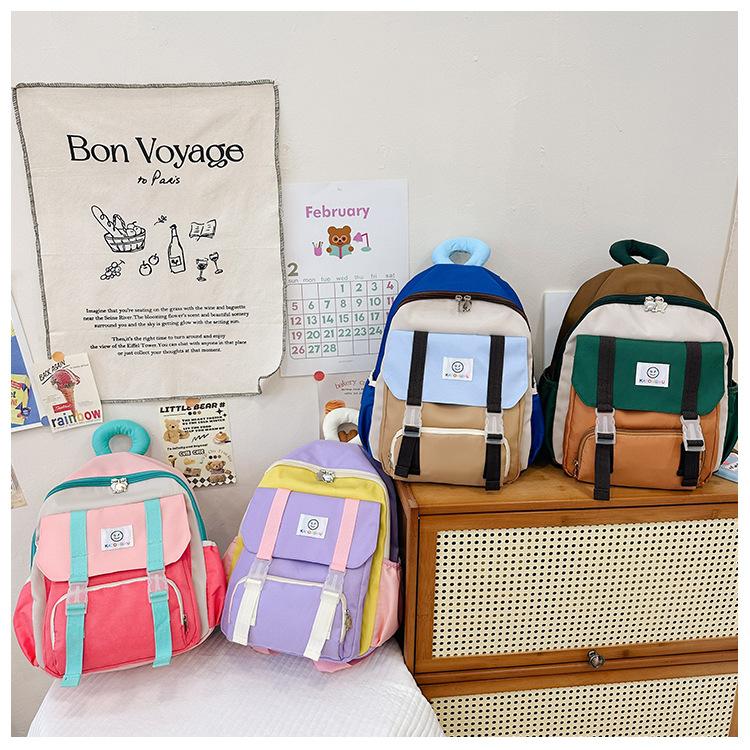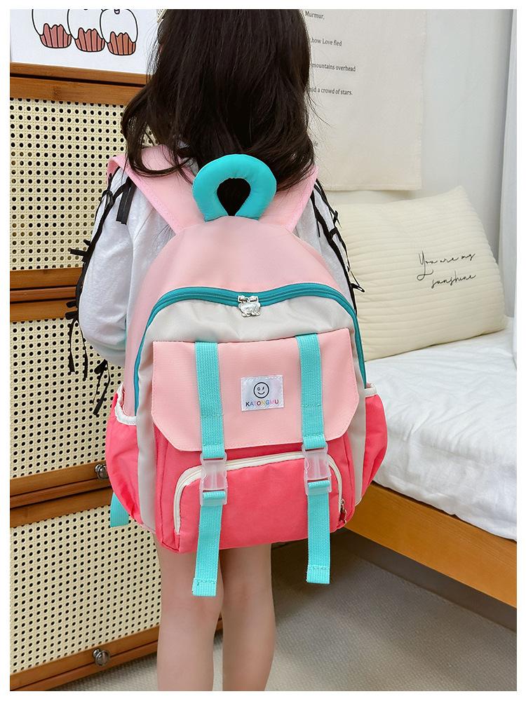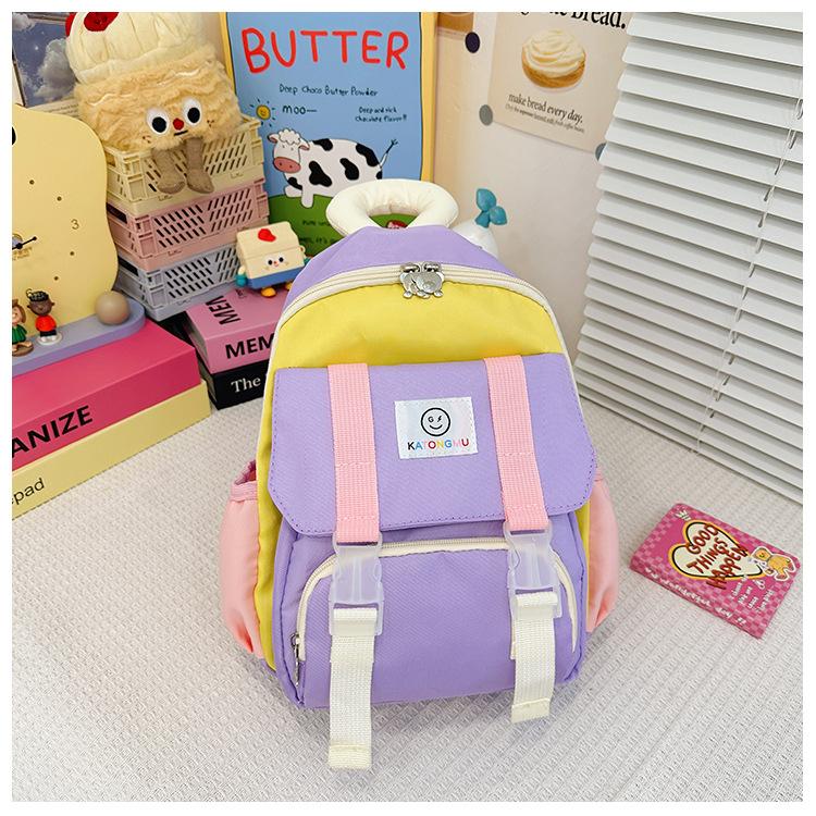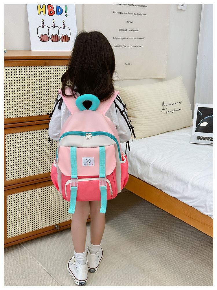 Mochila para Niños 2025 Nueva Coreana Color Contraste Ligera Mochila Escolar para Jardín de Niños Algodón Relleno Portátil Mochila con Letras